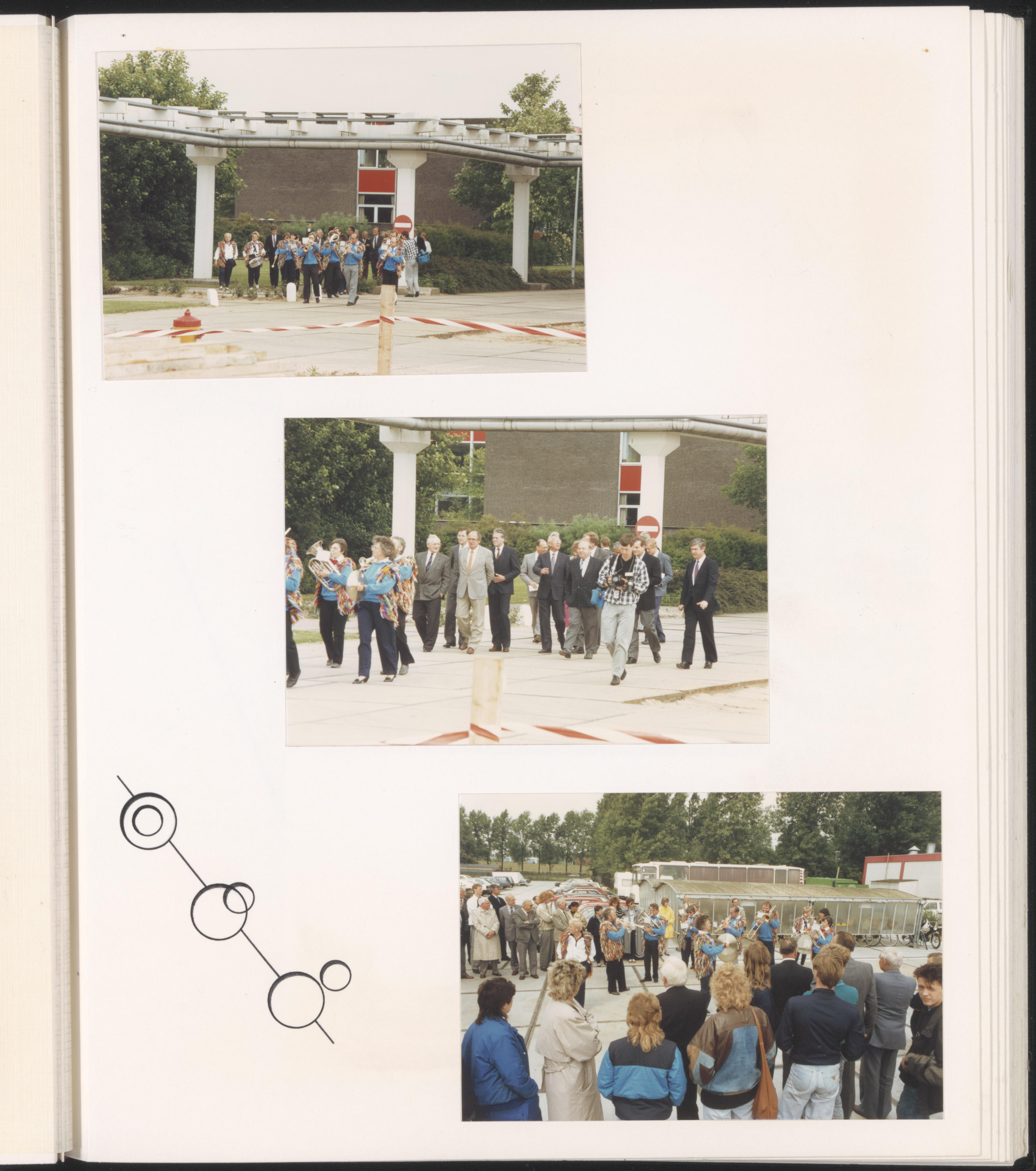 - Personeel bij het slaan van de eerste paal voor uitbreiding van de Swartzkopffabriek aan de Rijksstraatweg m.m.v. de boerenkapel Dotje Blaaskatoen.