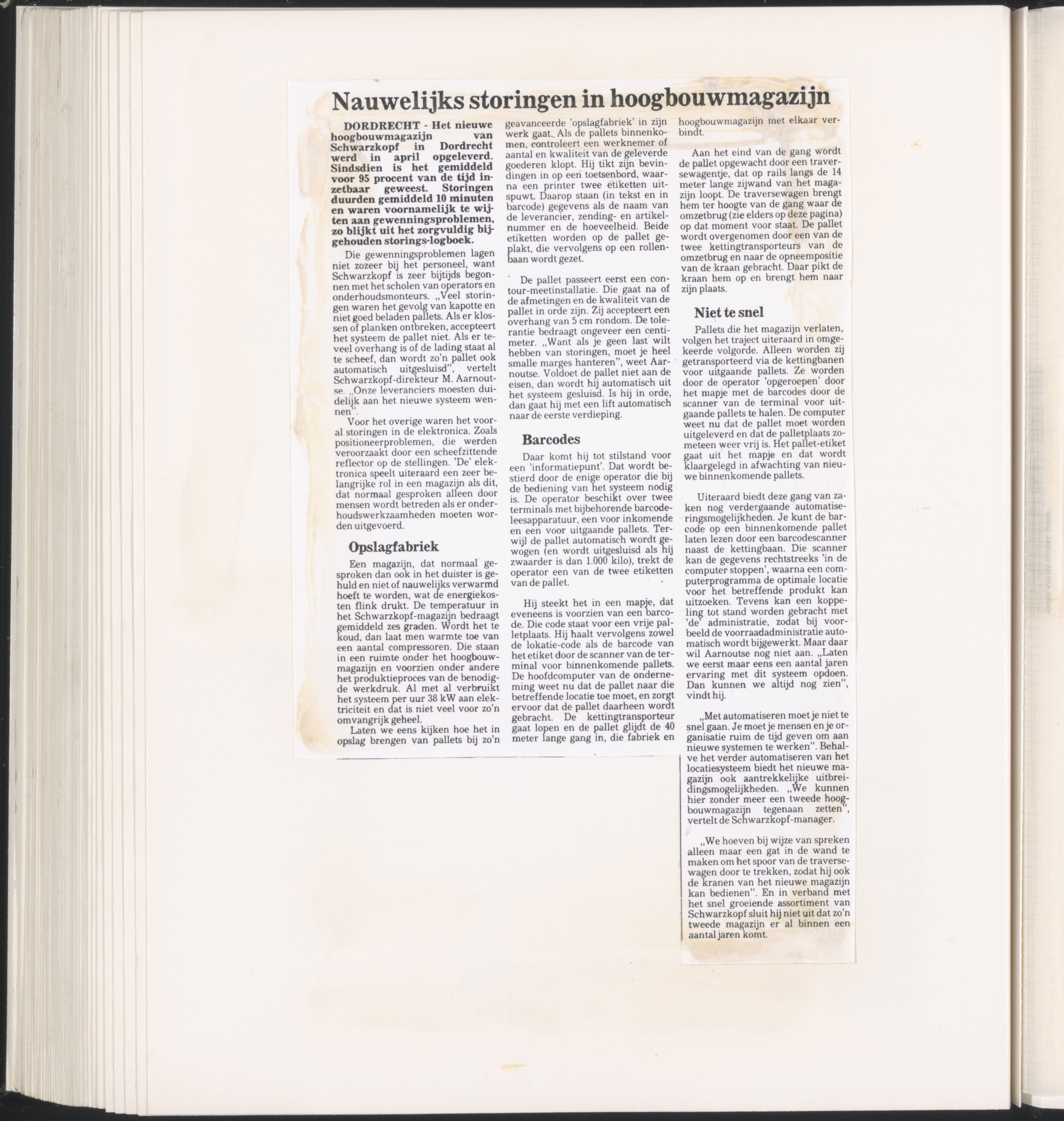 - Krantenartikel over de pas geopende uitbreiding van de Schwartzkopffabriek aan de Rijksstraatweg.