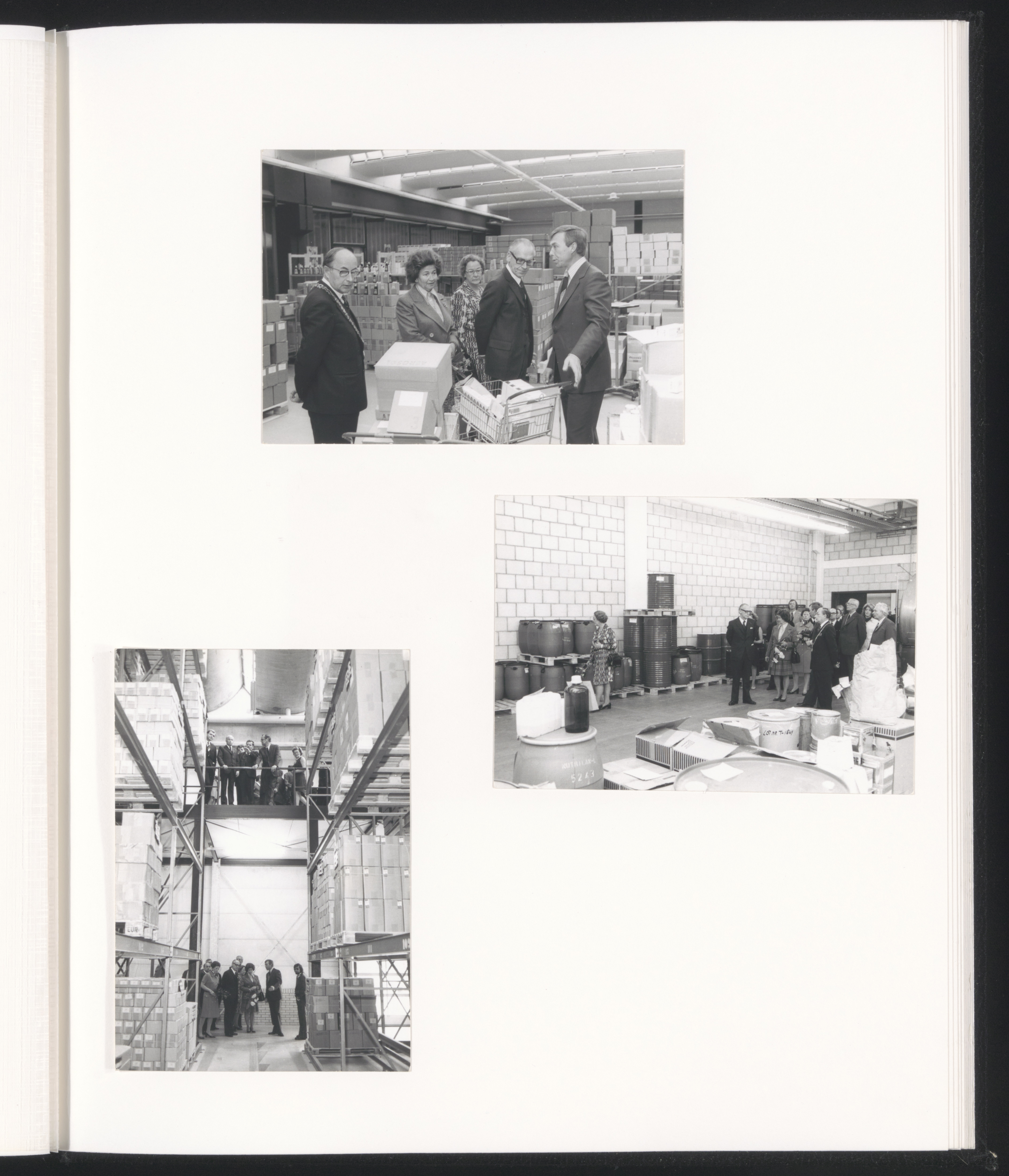 - Rondleiding voor genodigden bij de opening van de Schwarzkopf-fabriek aan de Rijksstraatweg. O.a. zijn aanwezig commissaris van de koningin Mr M. Vrolijk en burgemeester J. van der Lee.