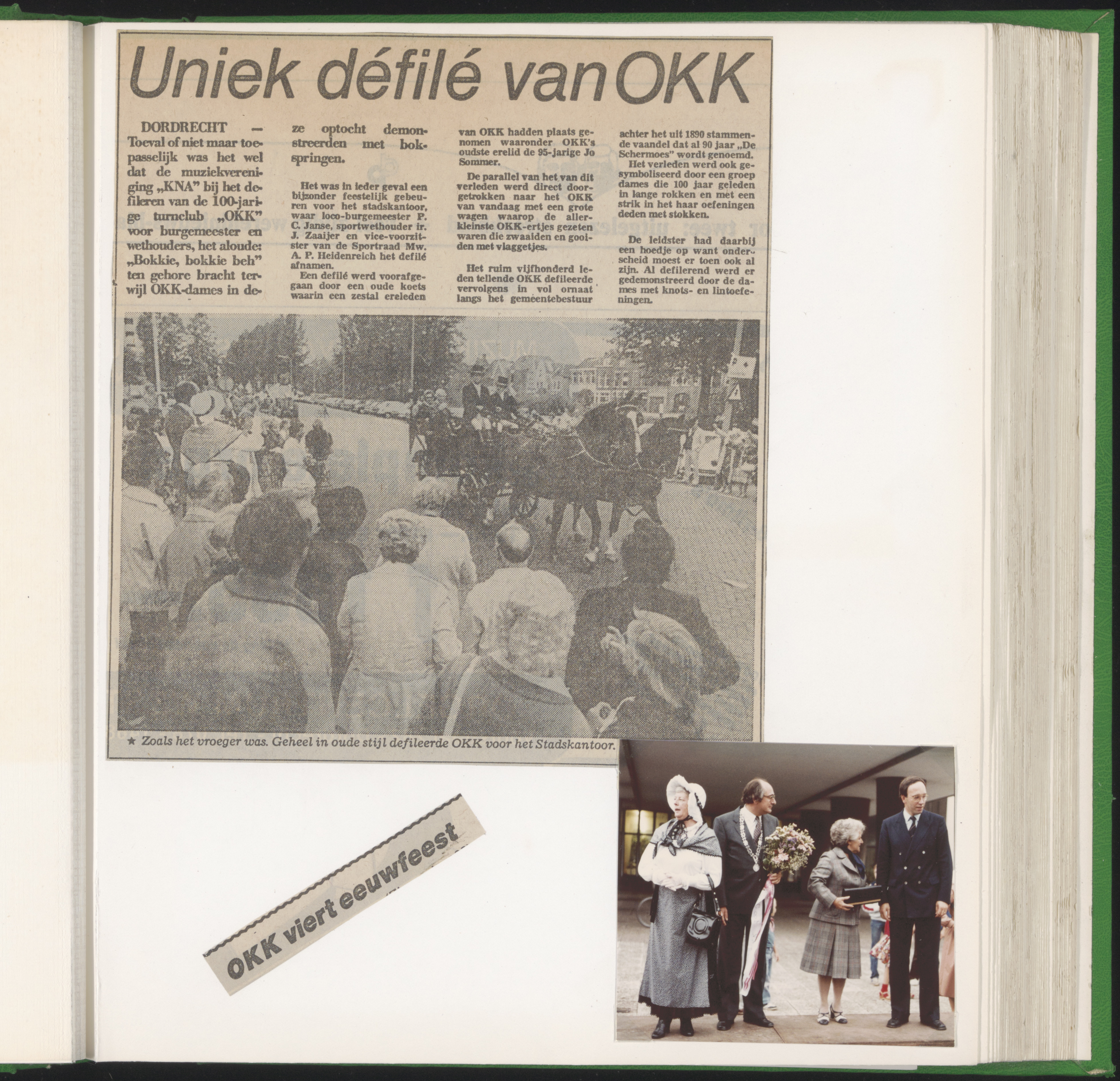 - Defilé bij het Stadskantoor door jubilerende gymnastiekvereniging OKK. Onder: v.l.n.r. voorzitter mw. Van Verre, loco-burgemeester Jansen, mw. Heidenreich en wethouder Zaaijer.
