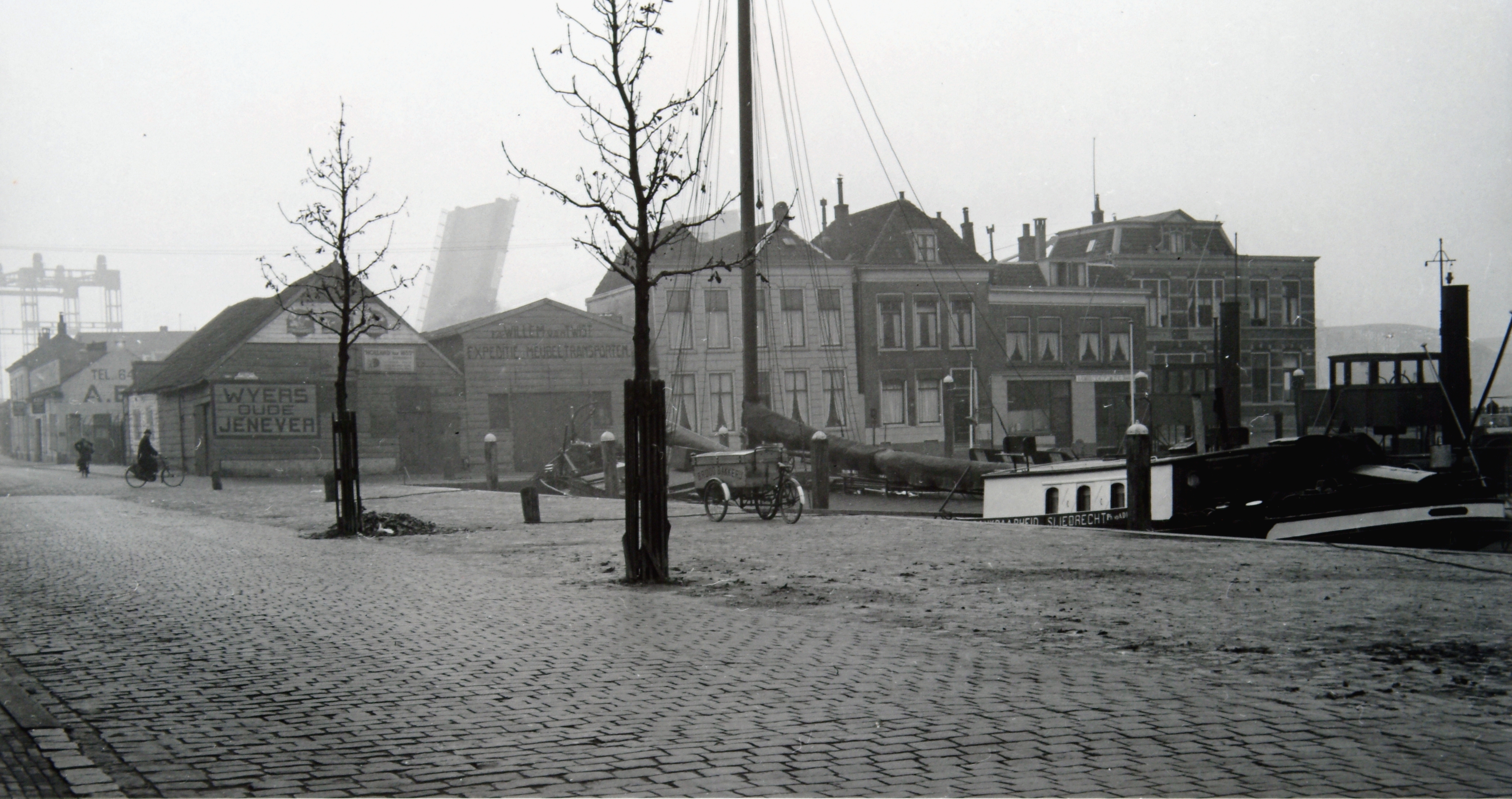 - Gezicht op de Draai vanaf het Achterhakkers. Op de achtergrond links, in het verlengde van Achterhakkers en het Wilgenbos, de Dokbrug. Midden op de foto de kleppen van de verkeersbrug naar Zwijndrecht.