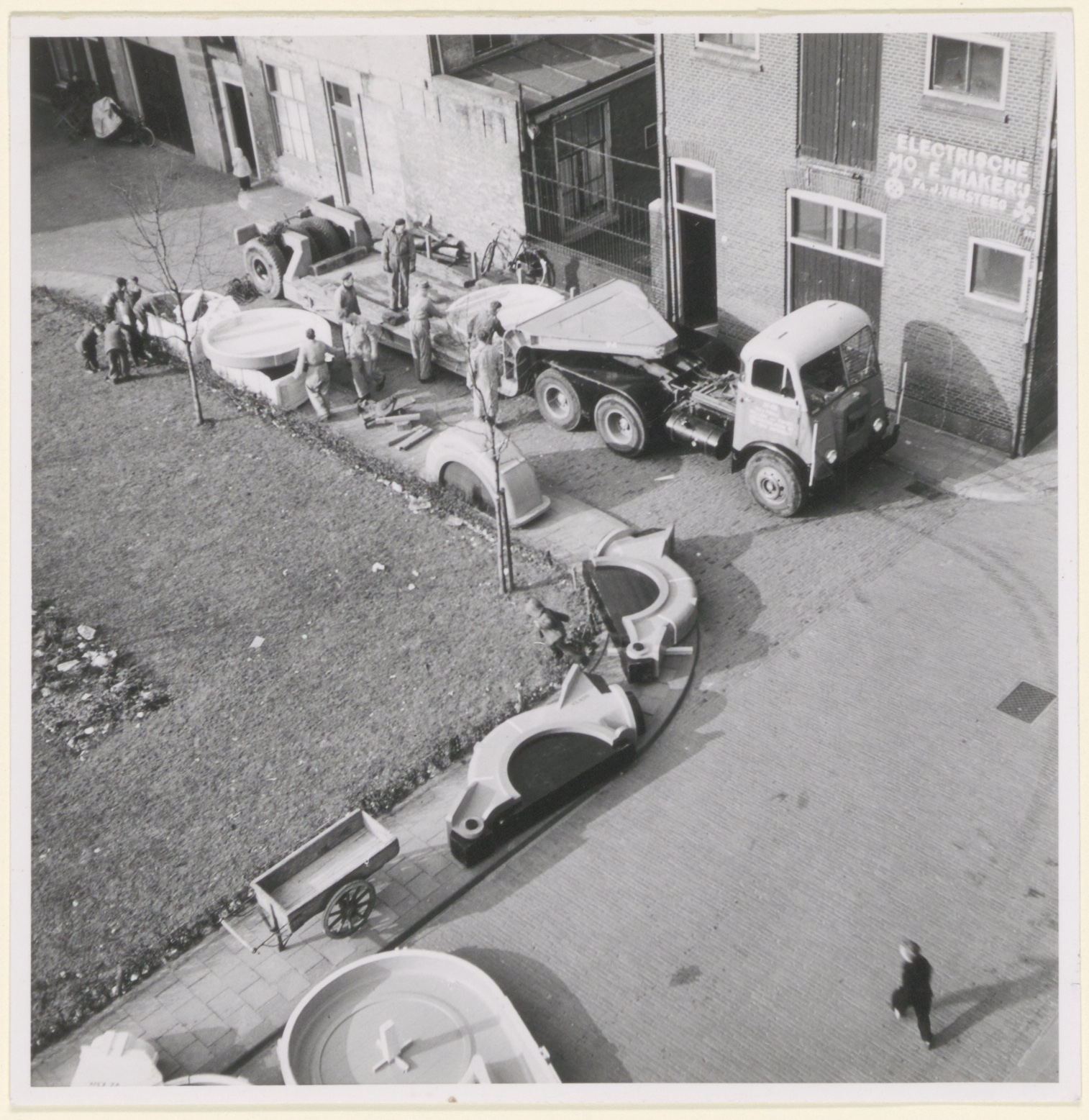 - Transport van producten van modelmakerij Versteeg aan de noordzijde van het Stek, op de hoek van de Veststraat.