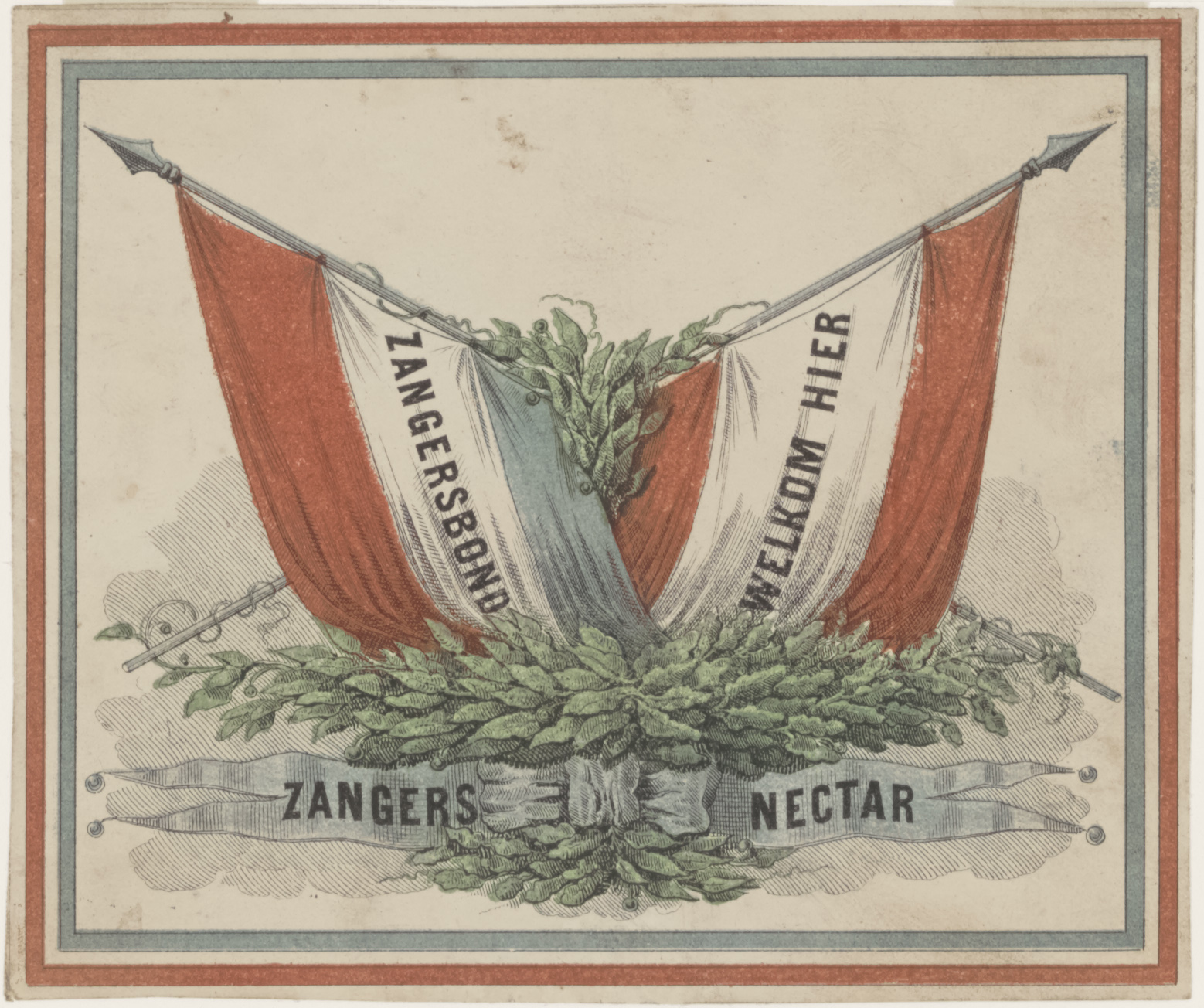 - Reclamekaart van het "Achtste Zangersfeest" van het Nederlands Nationaal Zangersverbond, gehouden in Dordrecht.