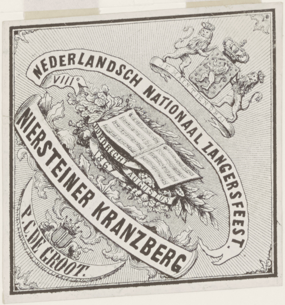 - Reclamekaart van het "Achtste Zangersfeest" van het Nederlands Nationaal Zangersverbond, gehouden in Dordrecht.