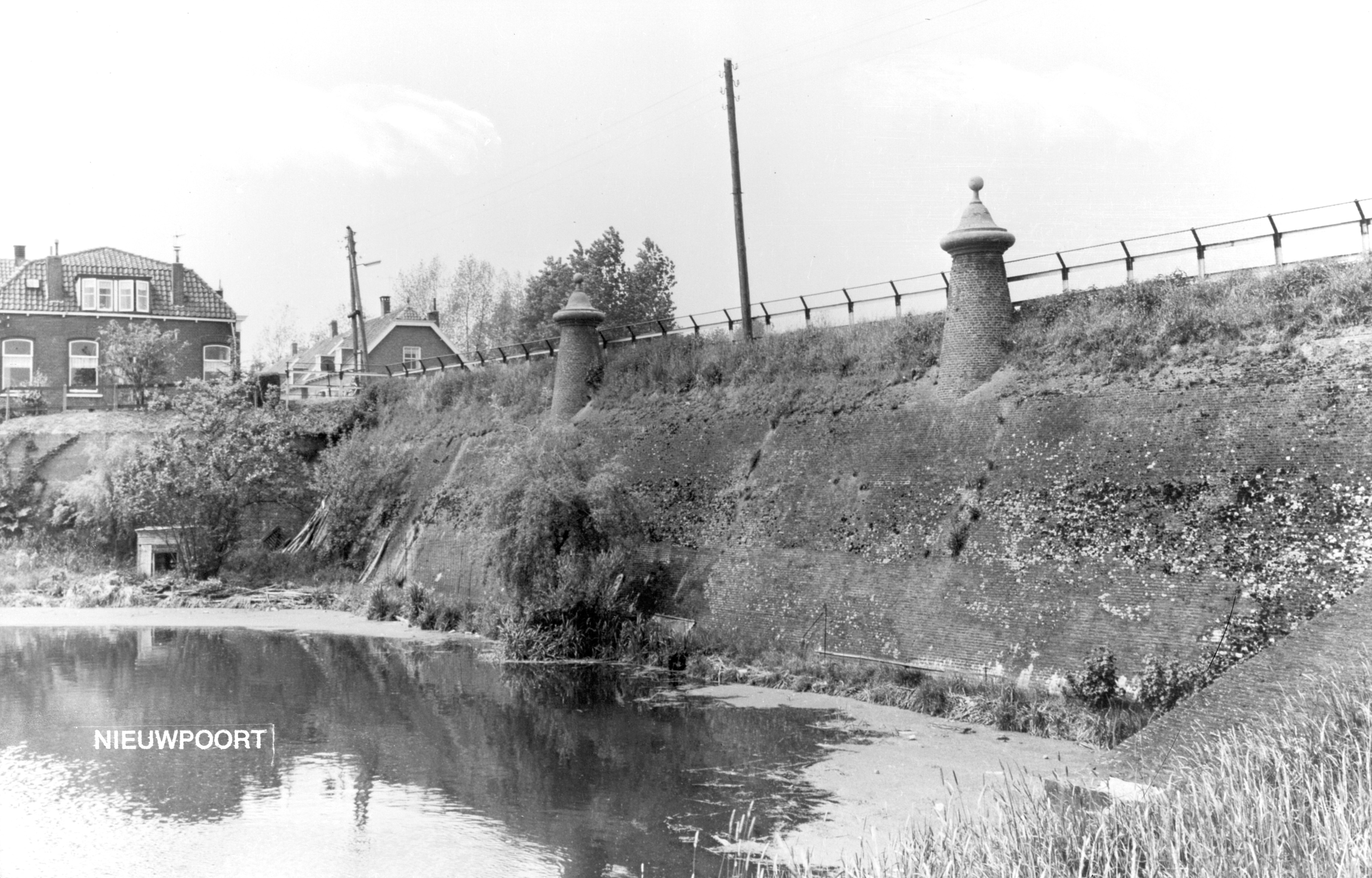 - Deel van de stadswal tussen Hoogstraat en Lekdijk (rechts) in Nieuwpoort.