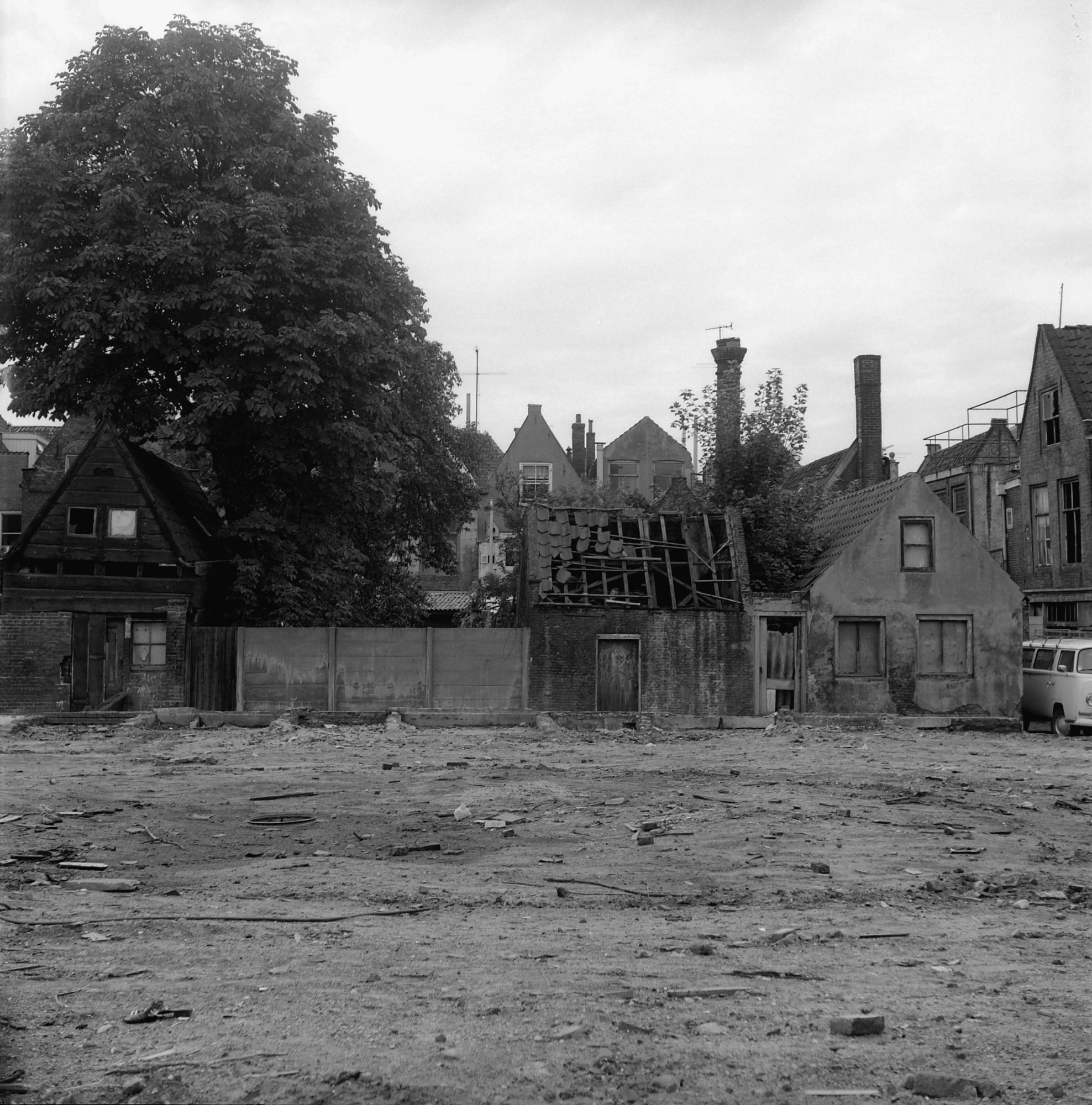De kleine panden vooraan waren deel van de achterterreinen van die huizenrij en lagen aan een dode sprant van de binnengracht, vandaar de rechte gevelwand. Na demping werd het een brandgang. Typische bebouwing die hier en daar nog te zien is.