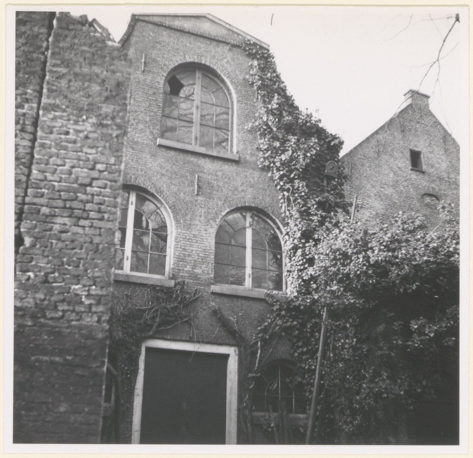 - Zicht vanuit het achterterrein van de "stadsvilla" aan de westzijde van de Wijnstraat tussen de Gravenstraat en de Tolbrugstraat.