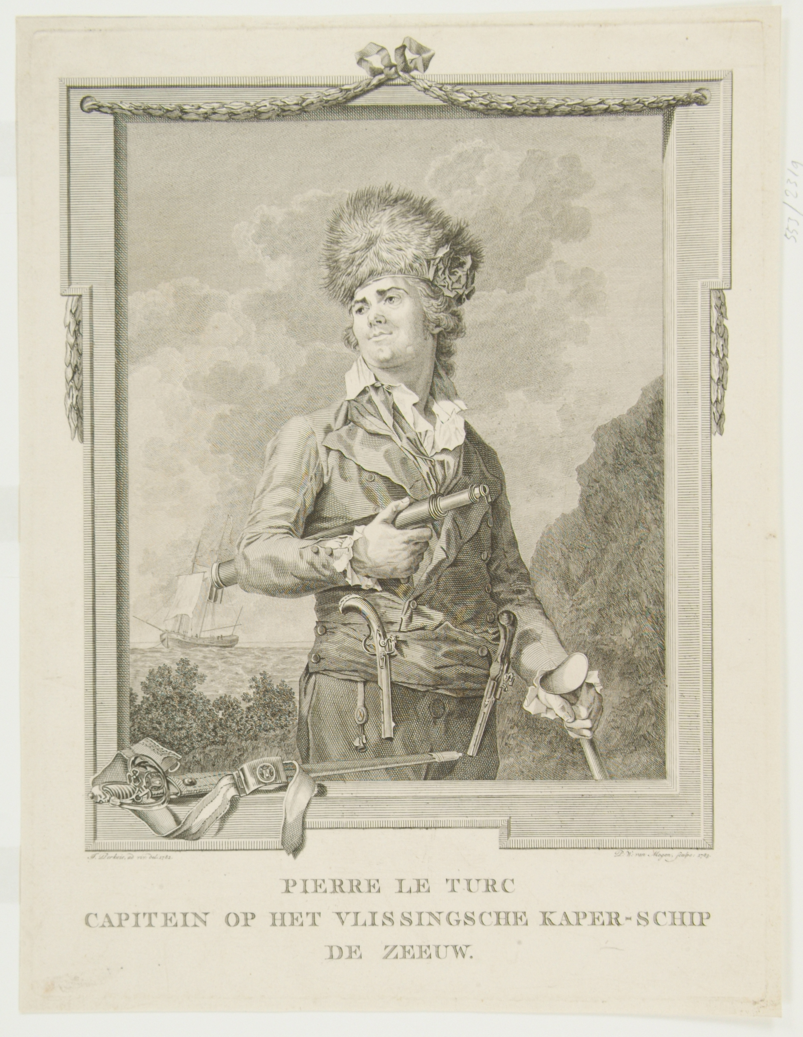 Portret van Perre le Turc, kaperkapitein in de 4e Engelse oorlog