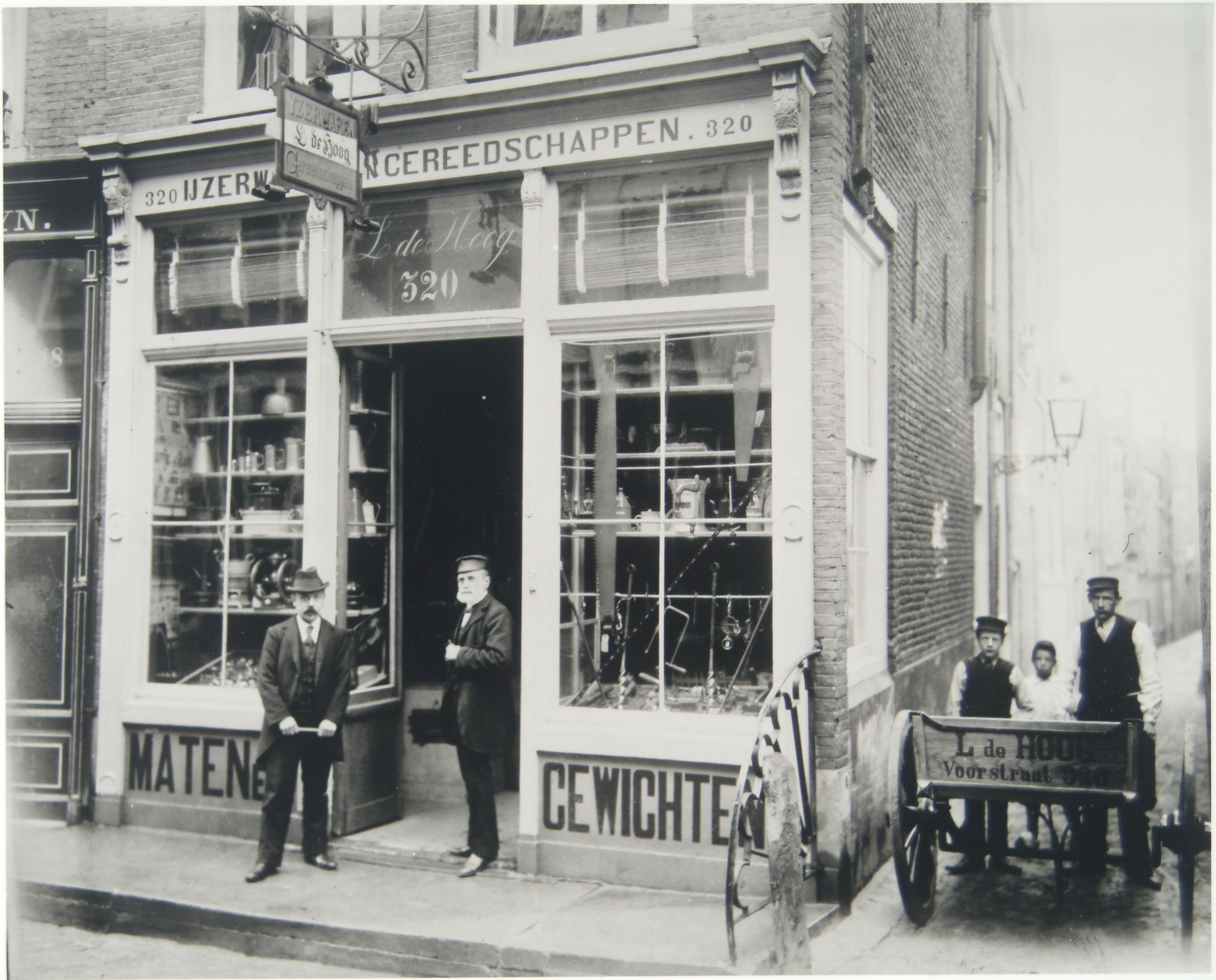 Handel in ijzerwaren en gereedschappen van L.de Hoog op de hoek van de Voorstraat en …