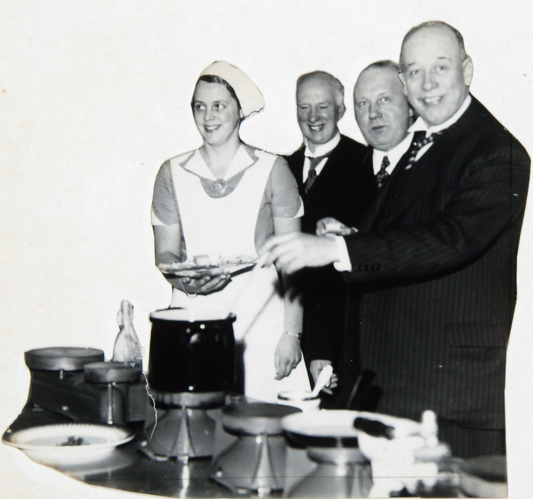 Burgemeester De Gaay Fortman proeft een stukje kaas bij de opening van de zuivelweek.