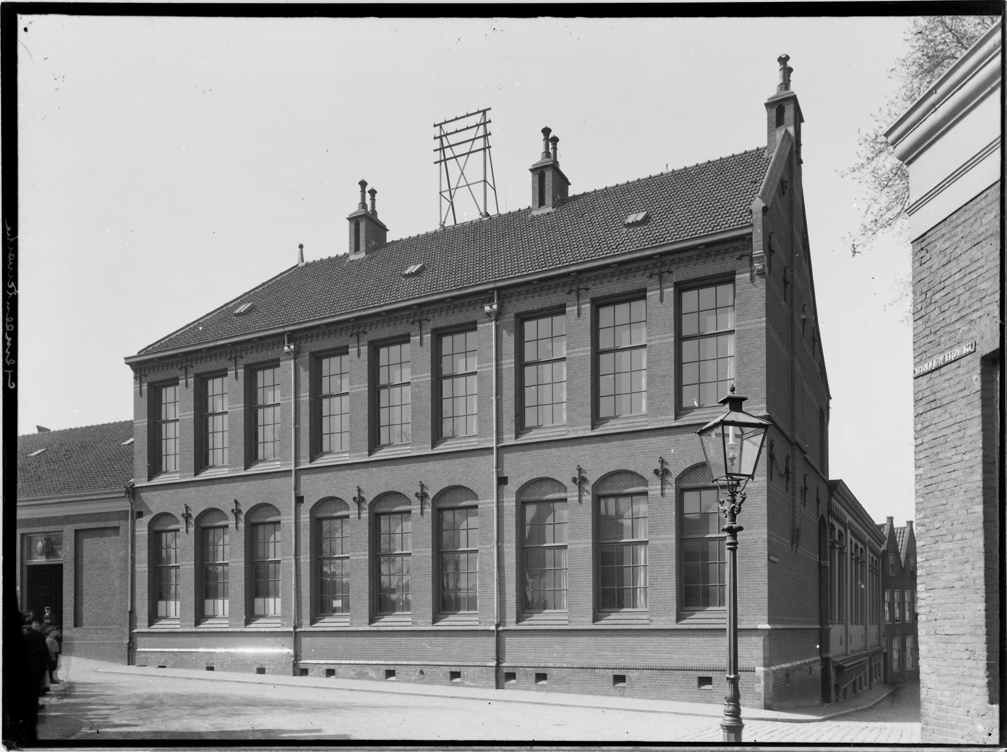 - Openbare lagere school aan de Vest en Nieuwkerksplein; rechts de Bleijenhoek