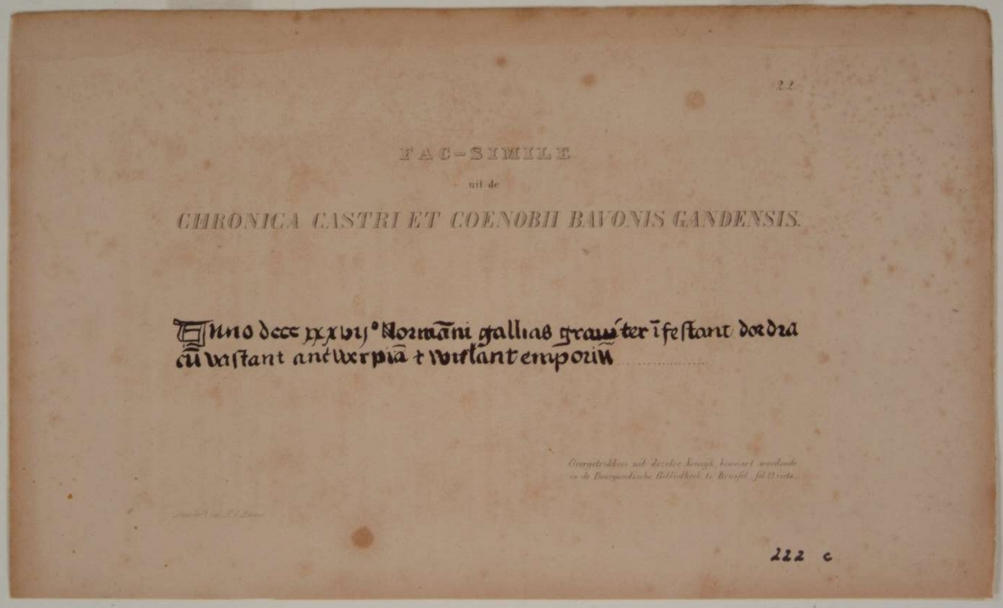 Prenten betr. Dordrecht, 1844: Fac-similie uit de Chronica Castri et Coenobii Bavonis Gandensis