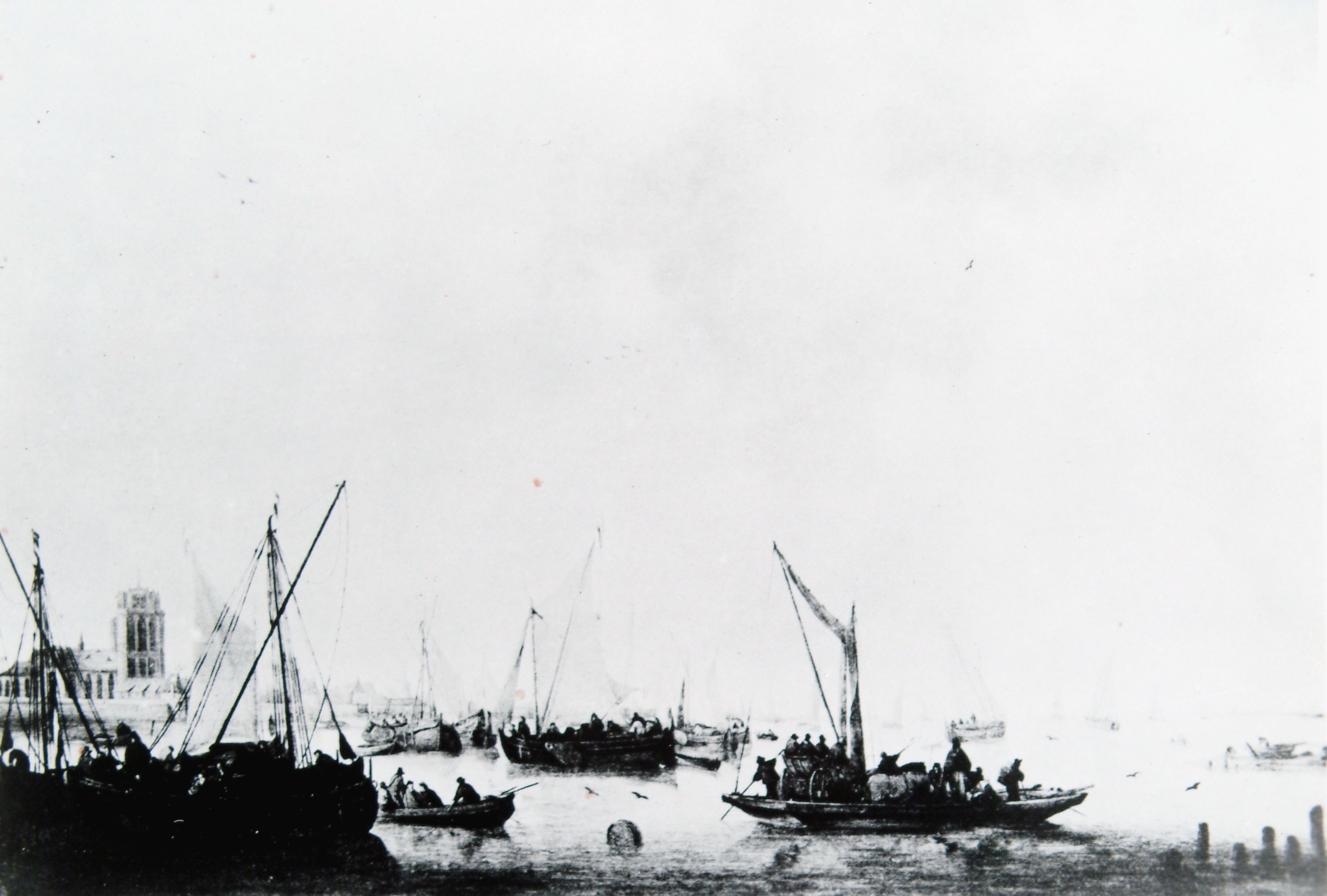- Gezicht op de Oude Maas bij de Grote Kerk, ca 1800