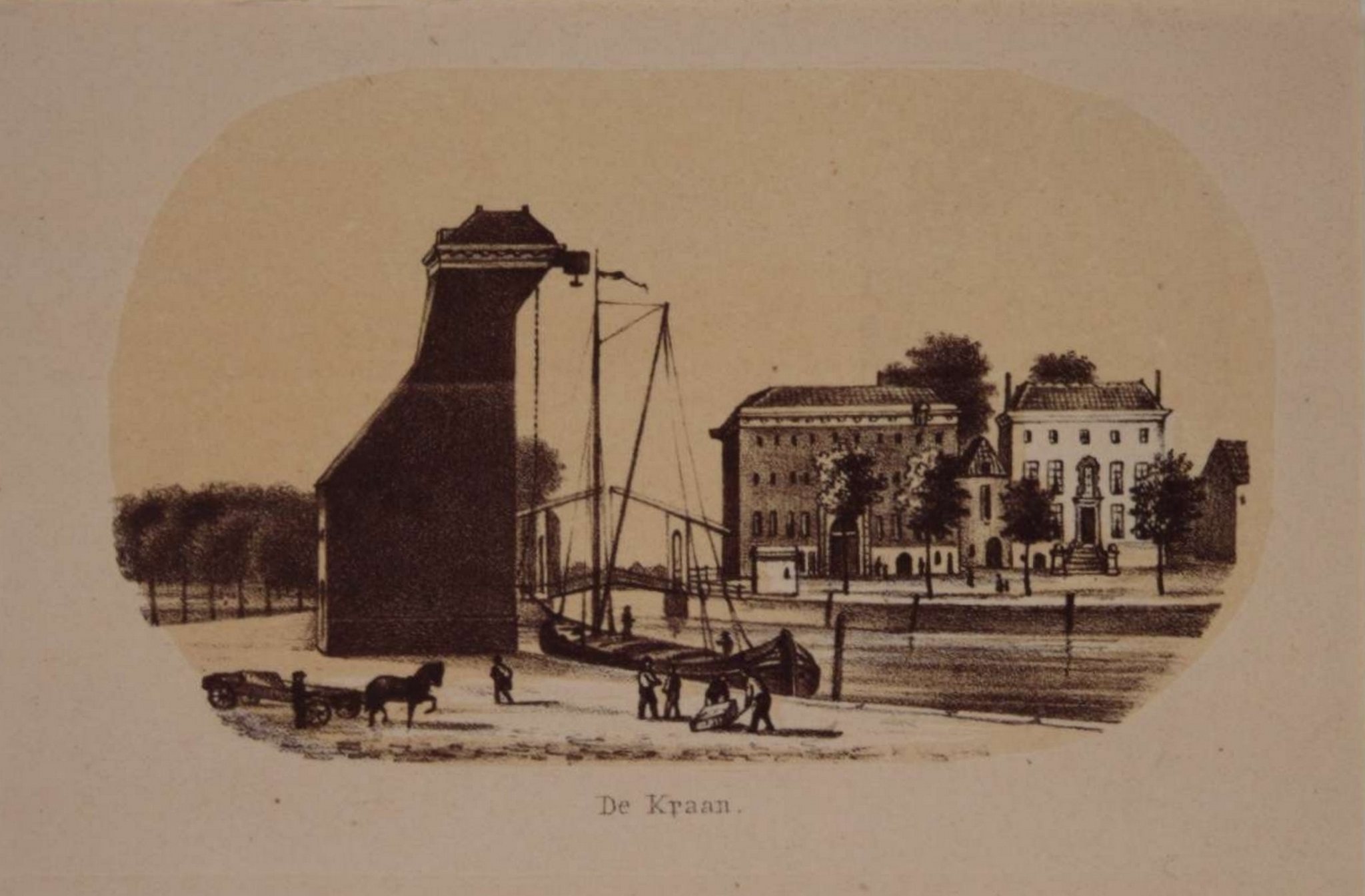 - Gezicht in Dordrecht: de Kraan, ca. 1857. Gedrukt als briefhoofd, op 8° vel postpapier