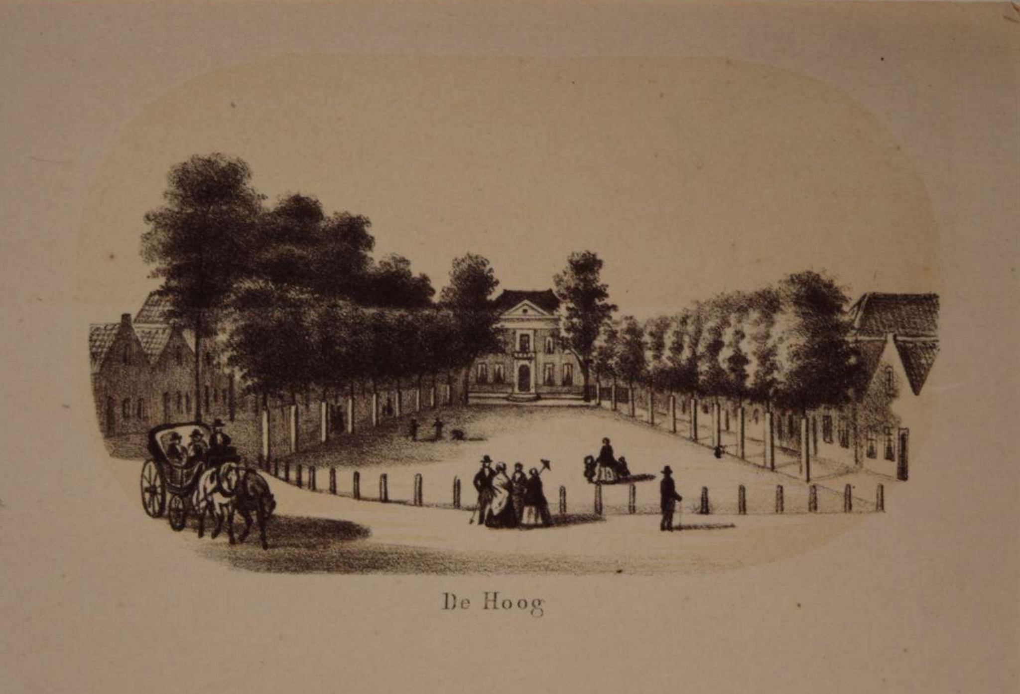 - Gezicht in Dordrecht: de Hoogt, ca. 1857. Gedrukt als briefhoofd, op 8° vel postpapier