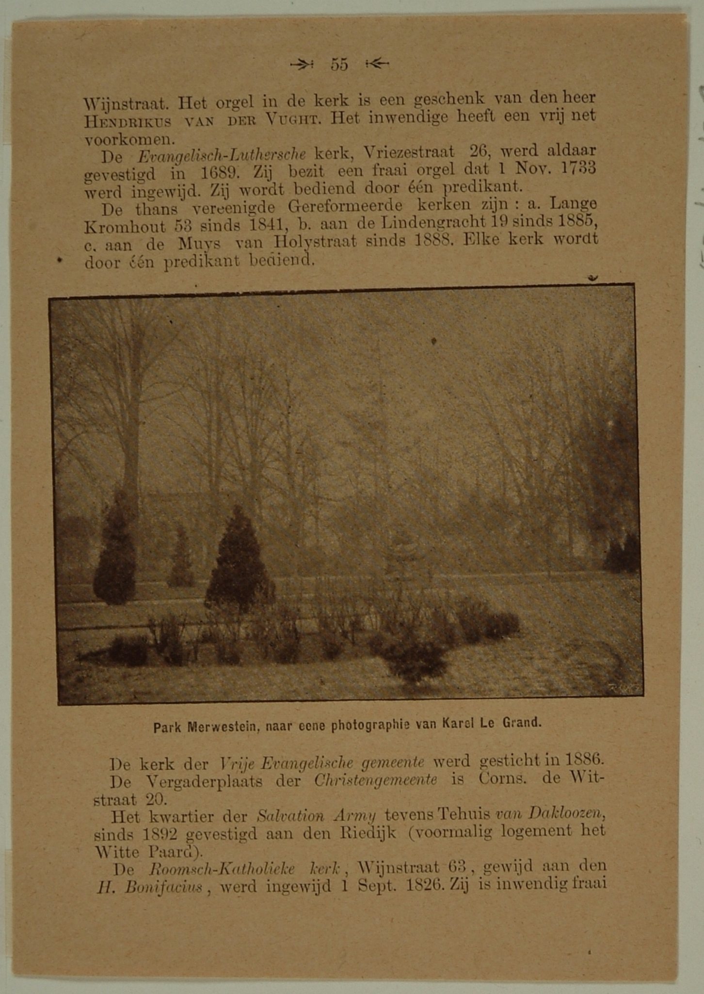 - Uit: "Dordrecht, Vroeger en Thans", voor Ingezetenen en Vreemdelingen, anno 1893; Park Merwestein