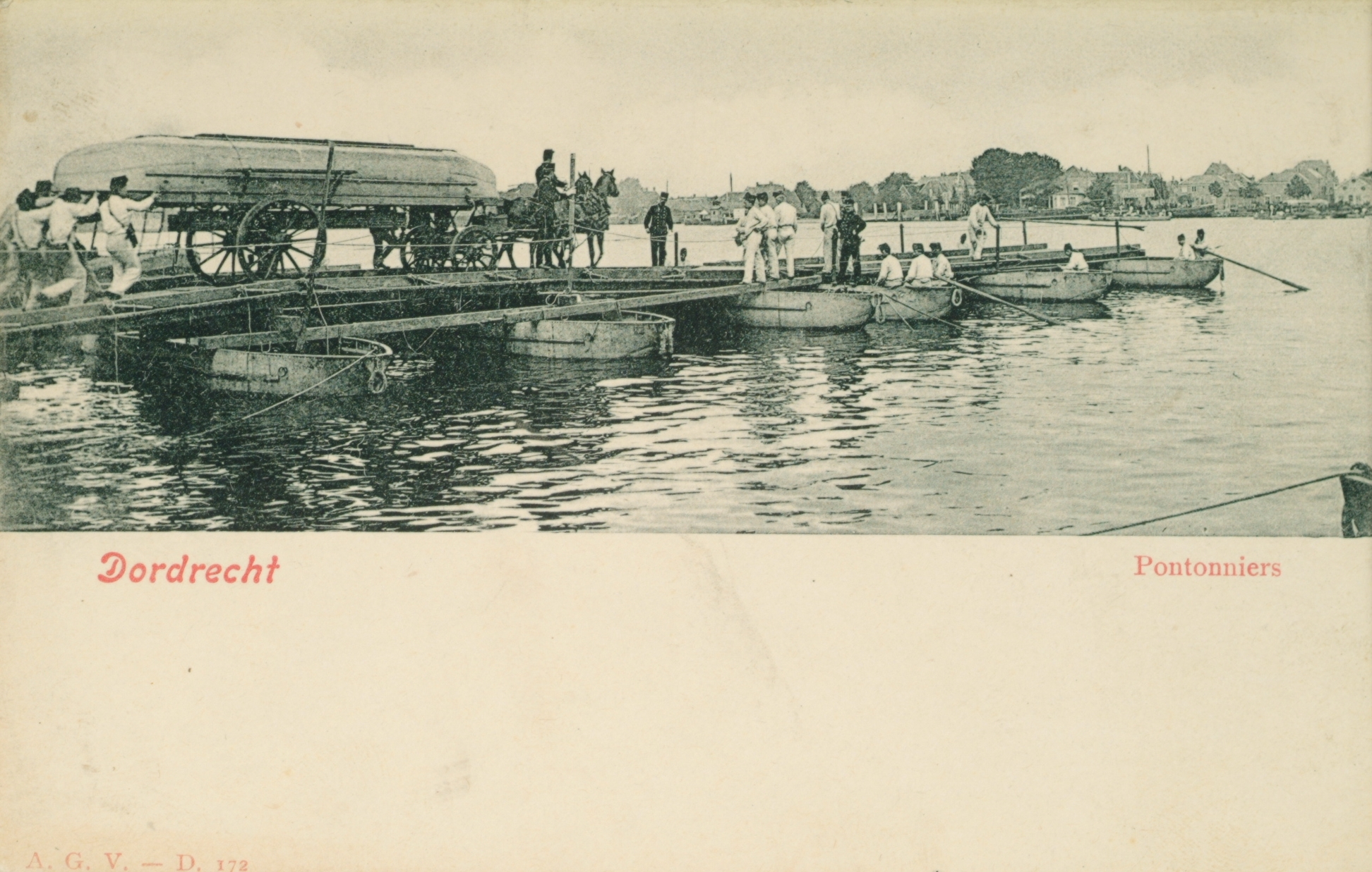 - militairen / soldaten paarden pontonbruggen pontonniers