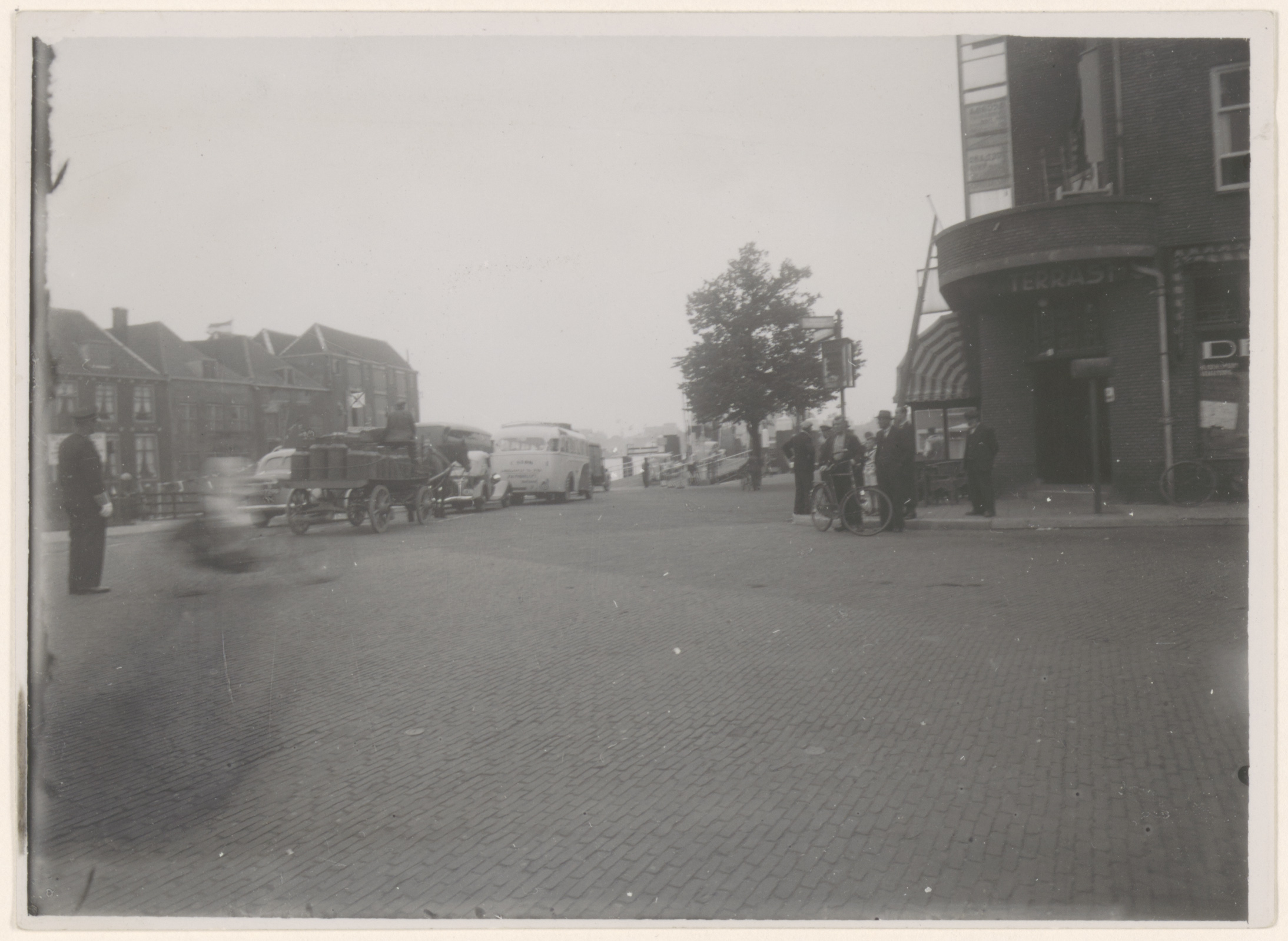 - autobussen paard-en-wagens pakhuizen veersteigers voetgangers