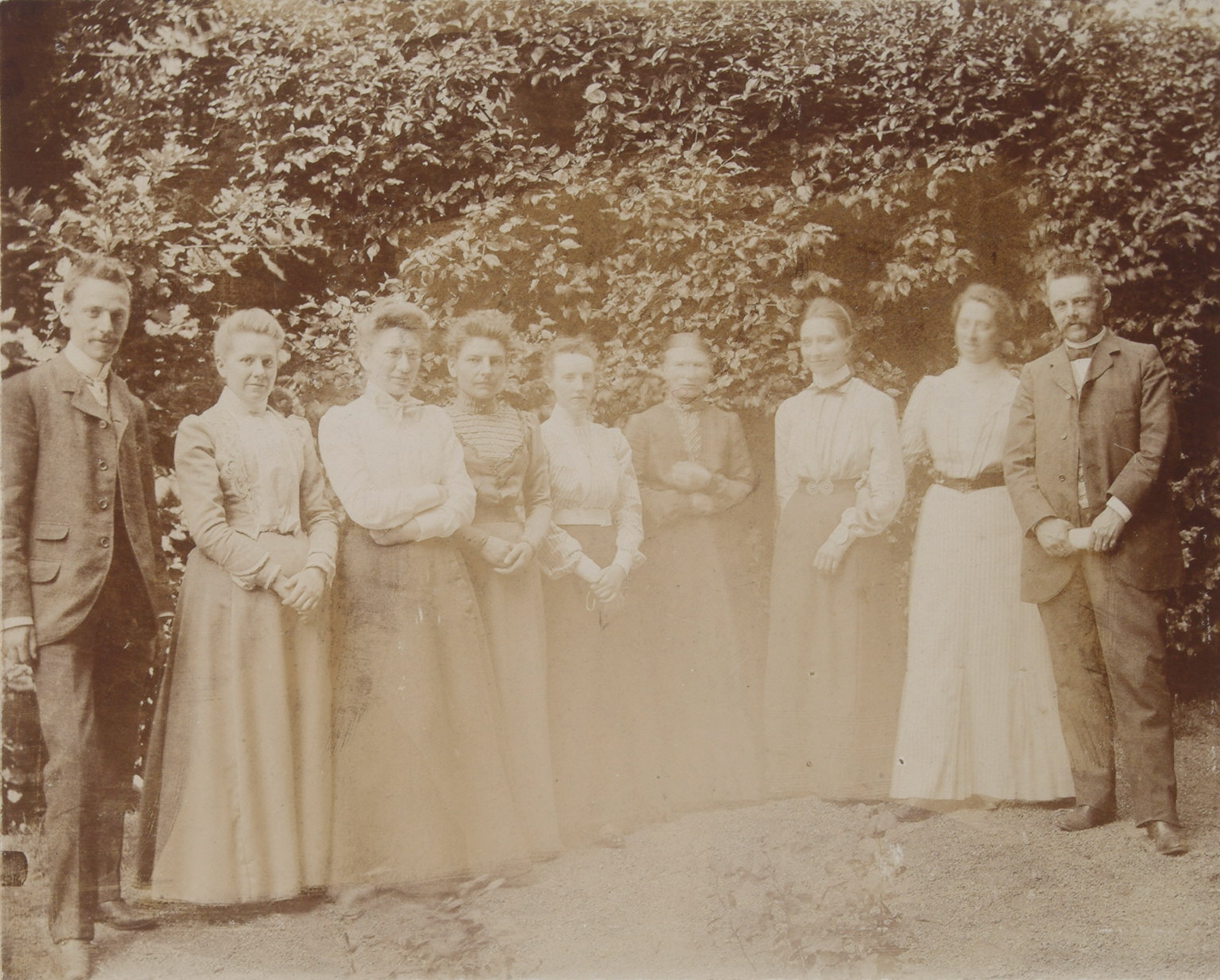 - Lerarenkorps van de Industrie- en Huishoudschool Doelesteyn aan het Steegoversloot in de tuin