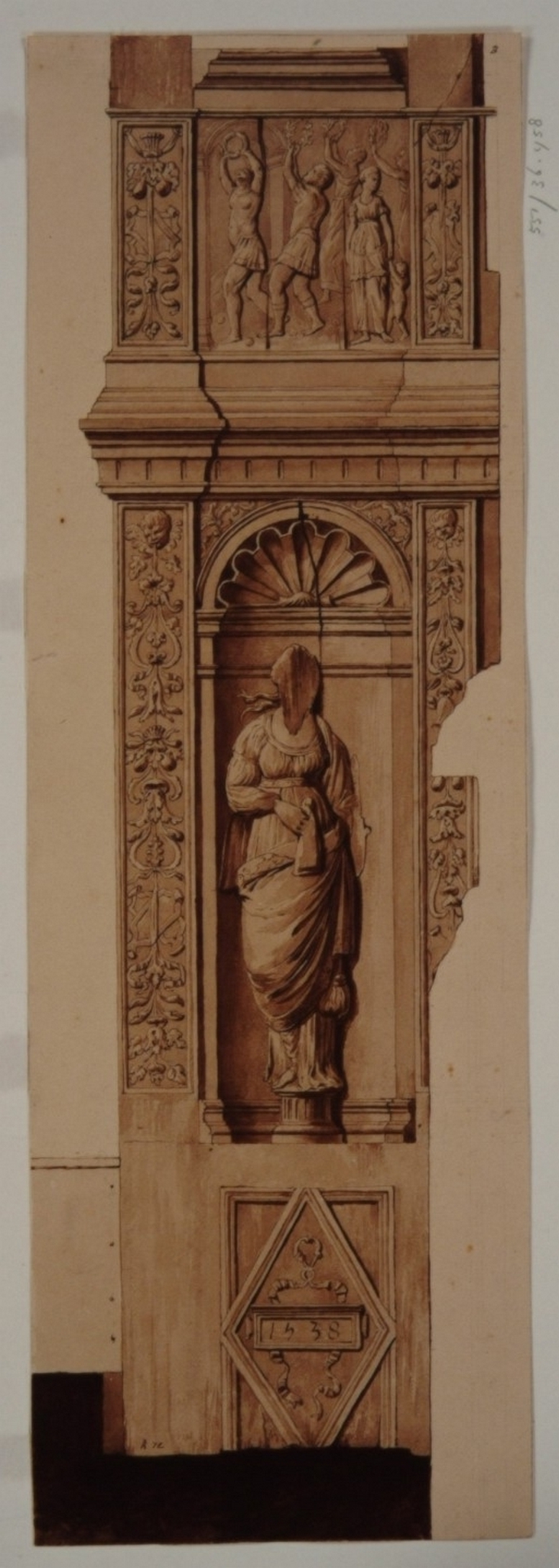 - Grote Kerk; koorbanken Noord- of Evangeliezijde: gedeelte met nis waarin een vrouwenbeeld staat; waarschijnlijk de H. Sura vanwege de geldbuidel aan haar zijde. Onderaan een cartouche met jaartal 1538.