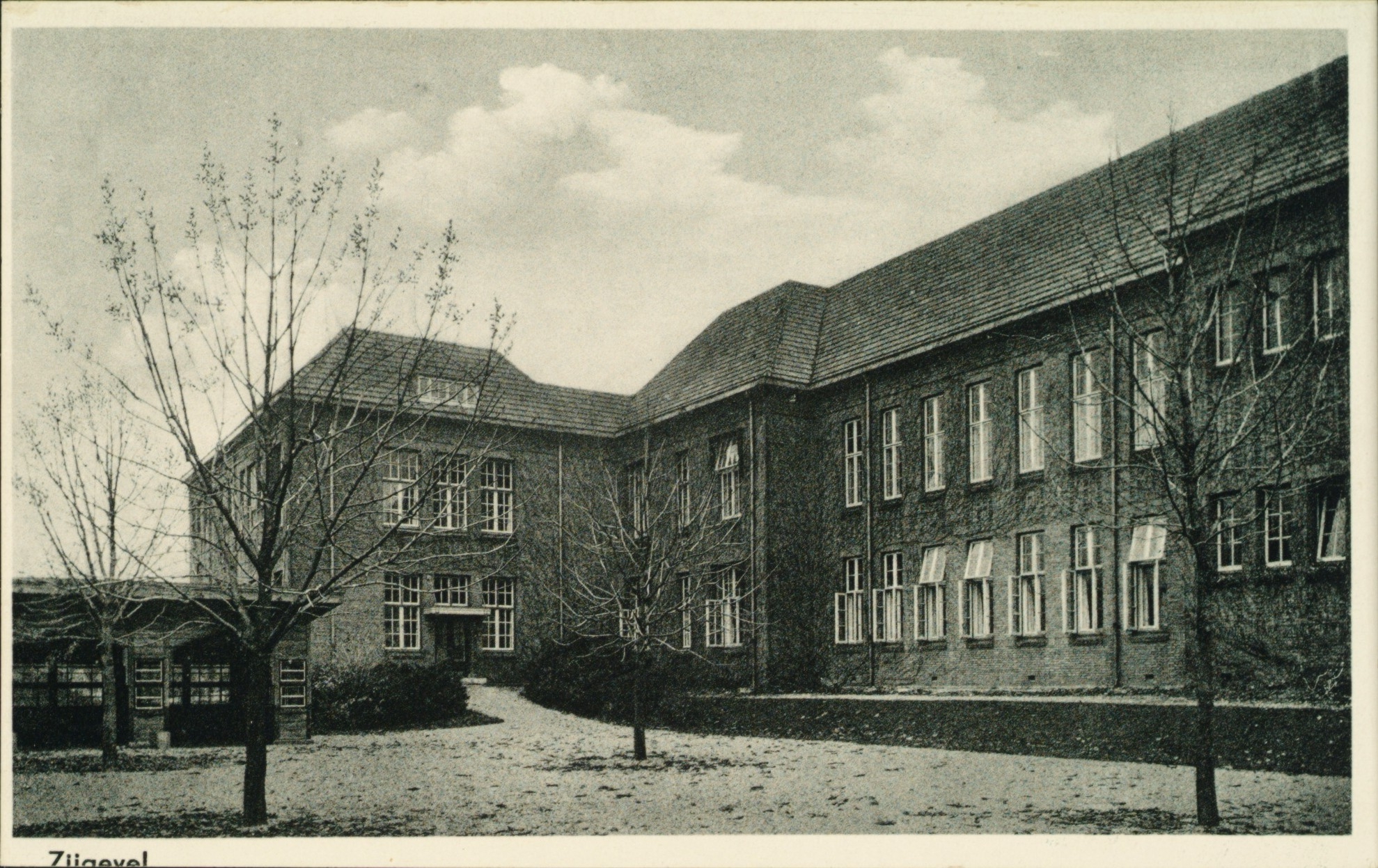 - De zijgevel van het Gemeenteziekenhuis in de Bankastraat.