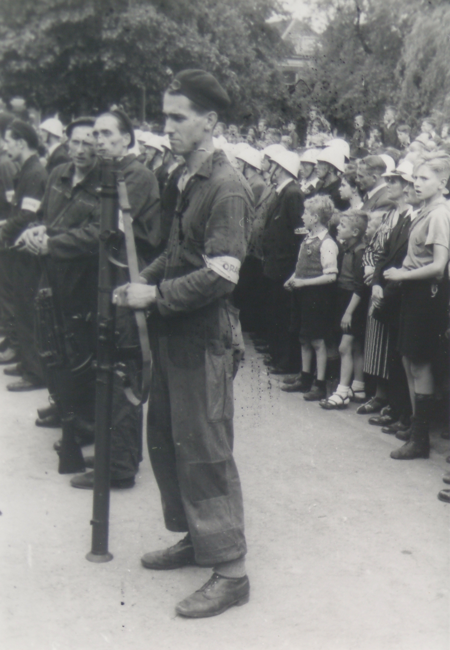 - militairen / soldaten oorlogstijd publiek / toeschouwers Tweede Wereldoorlog wapens (strijdmiddelen)