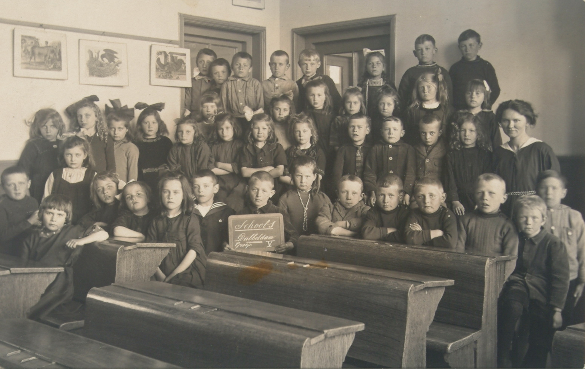 Klas V van school 1 te Dubbeldam. Rechts Saar in 't Veld