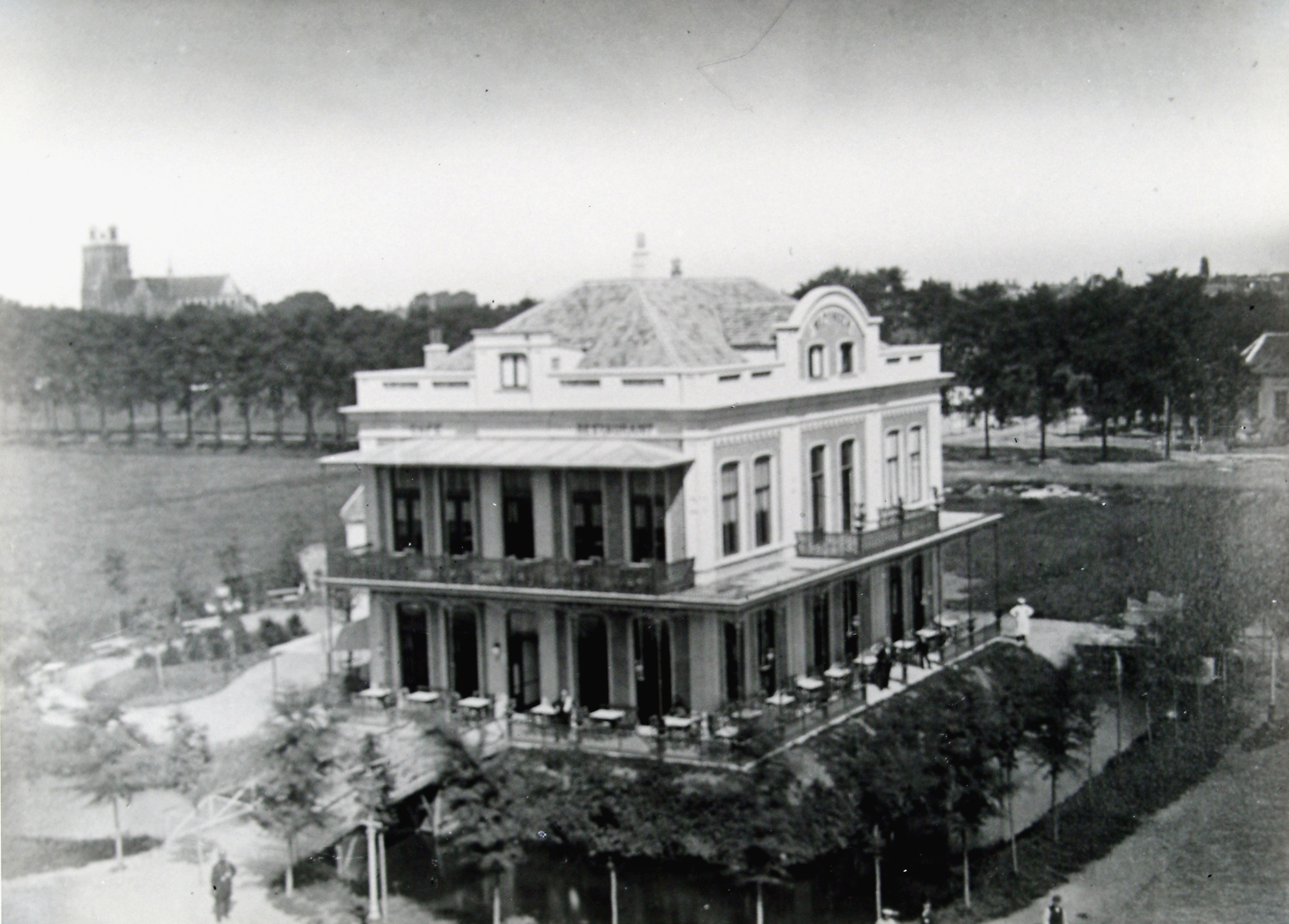 - Hotel Ponsen op de hoek Burgemeester de Raadtsingel (linksonder) en Stationsweg (rechtsonder).
