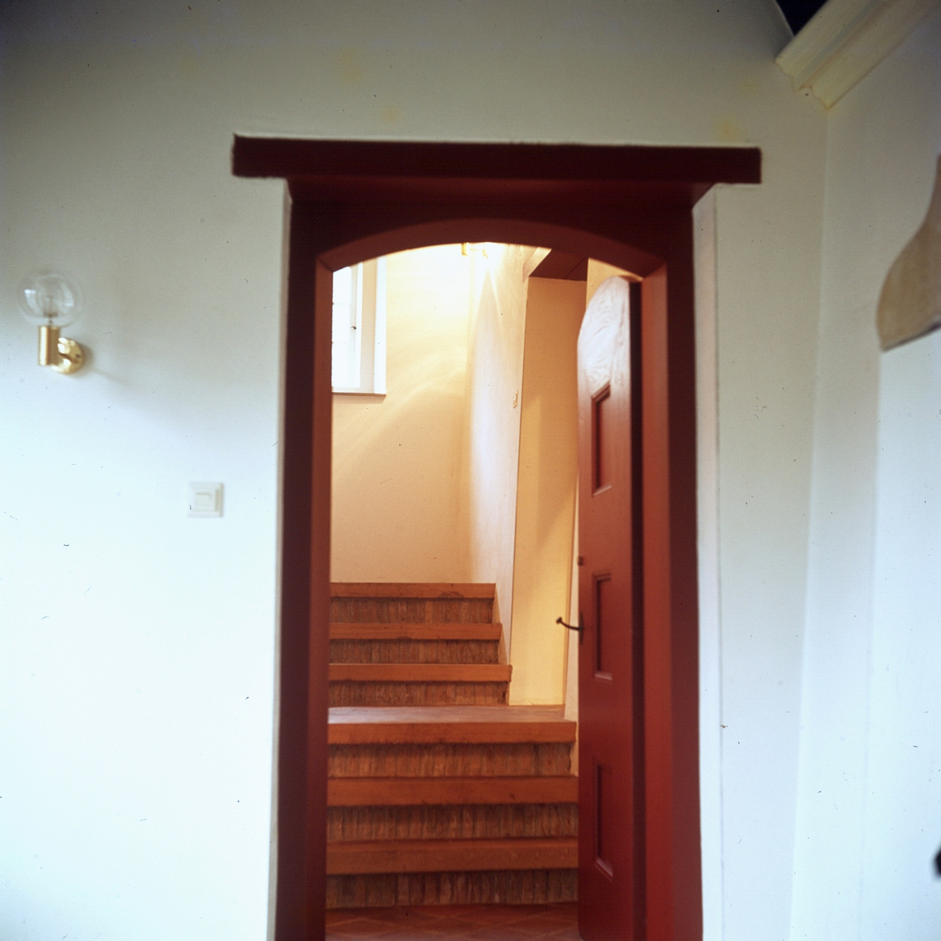 Doorkijkje naar de trap vanuit één ruimte's in het gerestaureerde Hof.