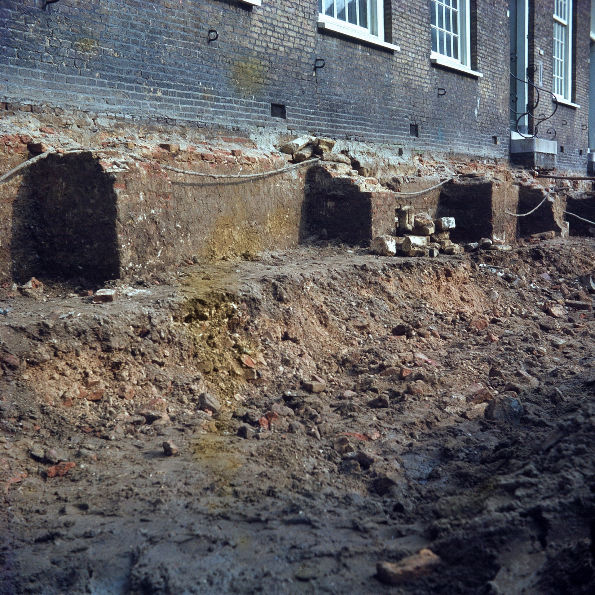 Bij de afgraving van het binnenplein kwamen delen van de steunberen van de voormalige …