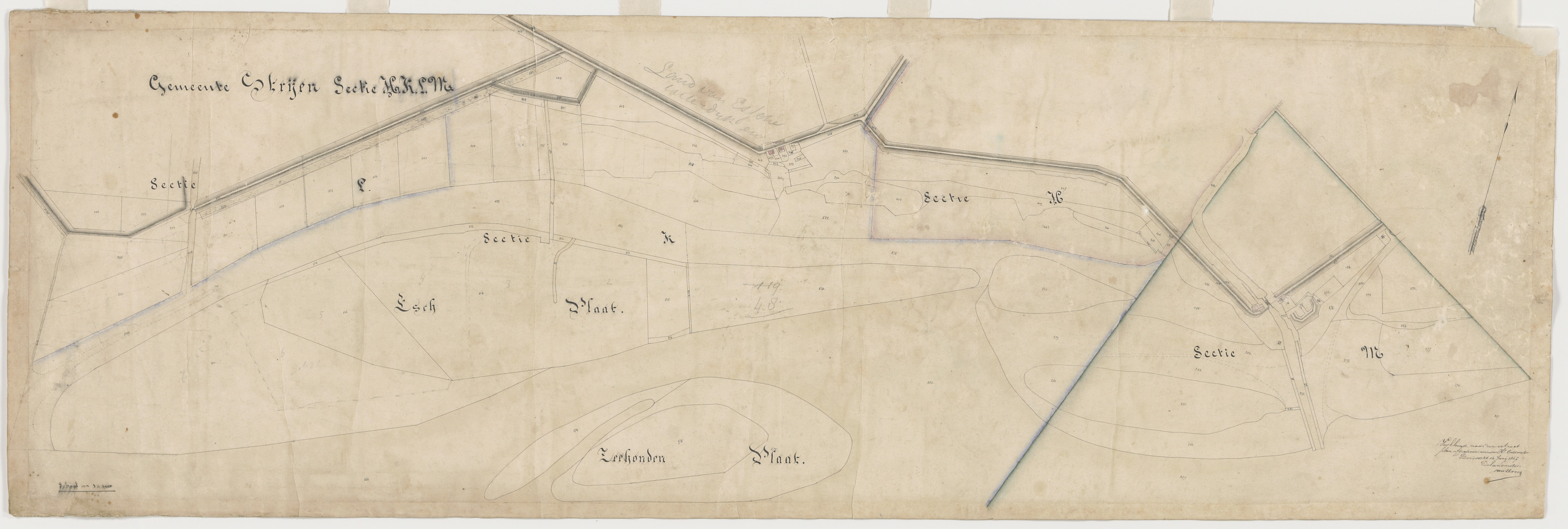 - Uitreksel uit het kadastrale plan van de gemeente Strijen, sectie H, K, L en M door de landmeter van het kadaster Van Dooren