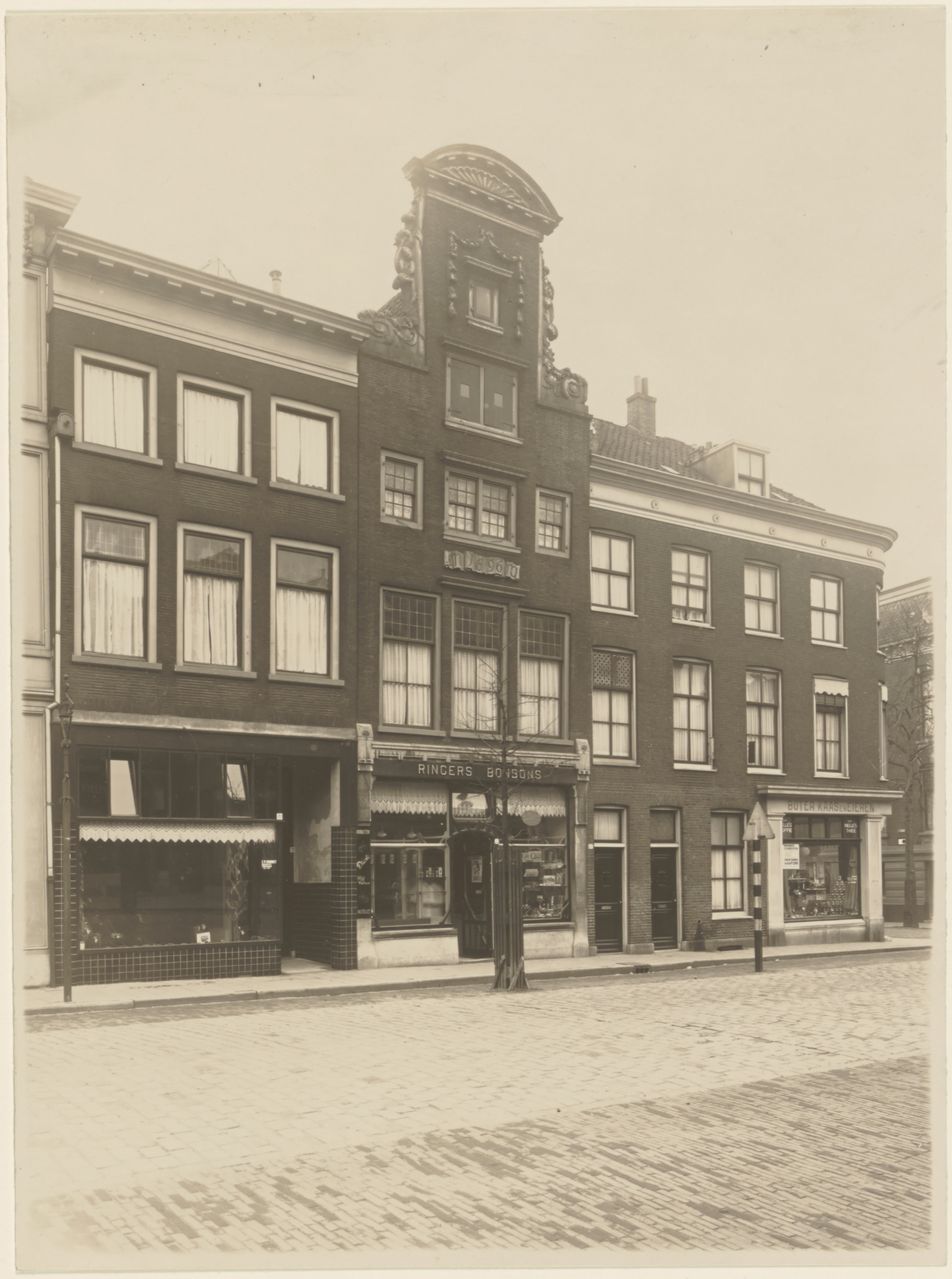 Huizen aan de zuidzijde van het Steegoversloot, tussen de Museumstraat (rechts) en de …