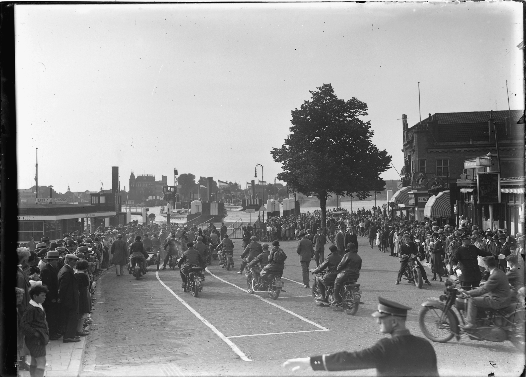 - Motorfietsen en toeschouwers bij het Zwijndrechts veer en de Buiten Walevest.