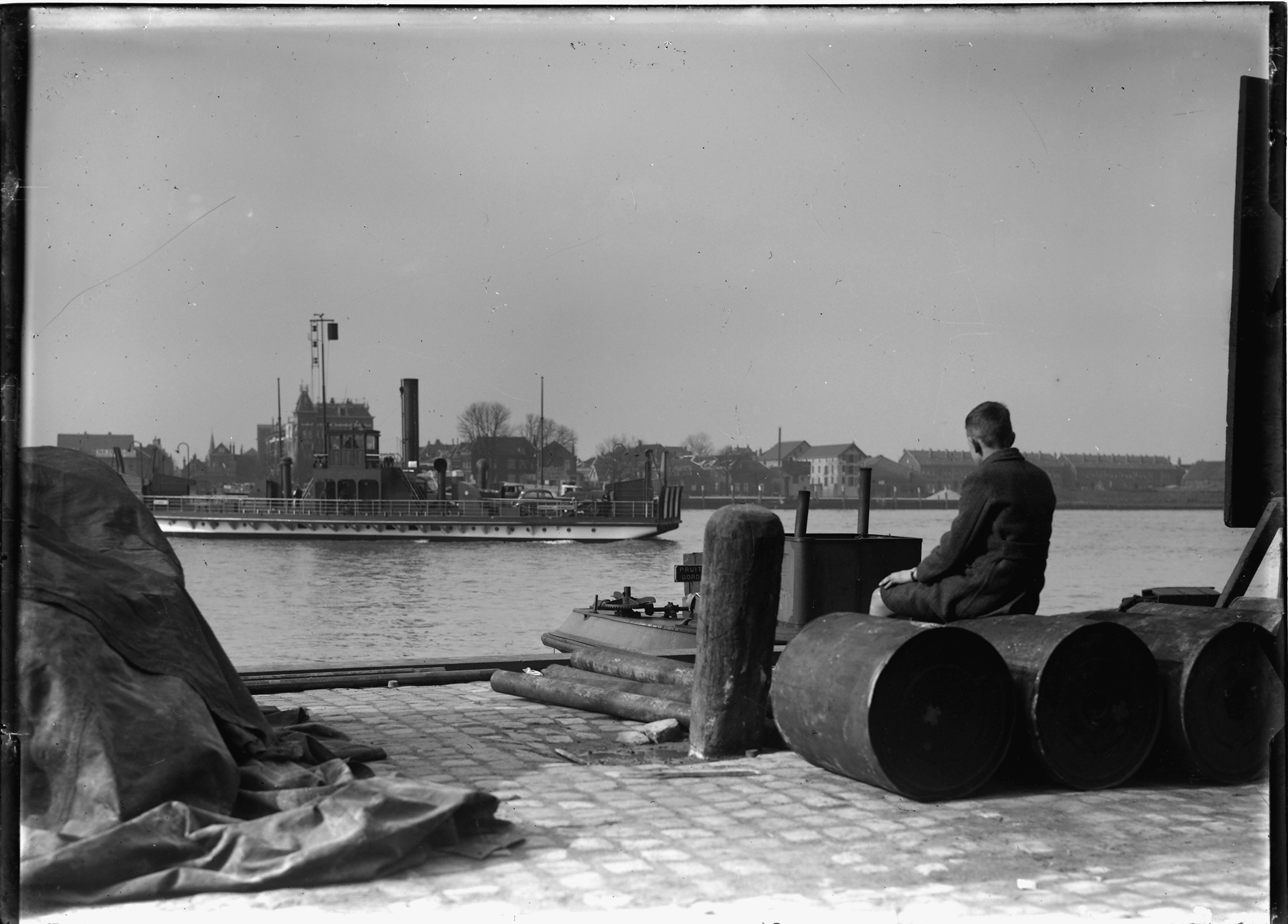 Veerboot naar Zwijndrecht op de Oude Maas, gezien vanaf de Hooikade.