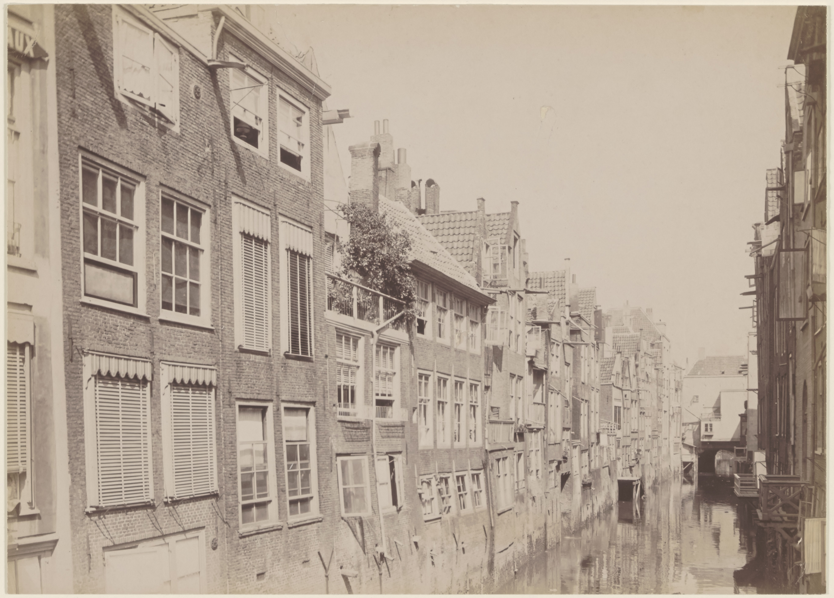 - De Voorstraatshaven vanaf de Visbrug naar de Tolbrug. Links de Groenmarkt, rechts de Voorstraat.
