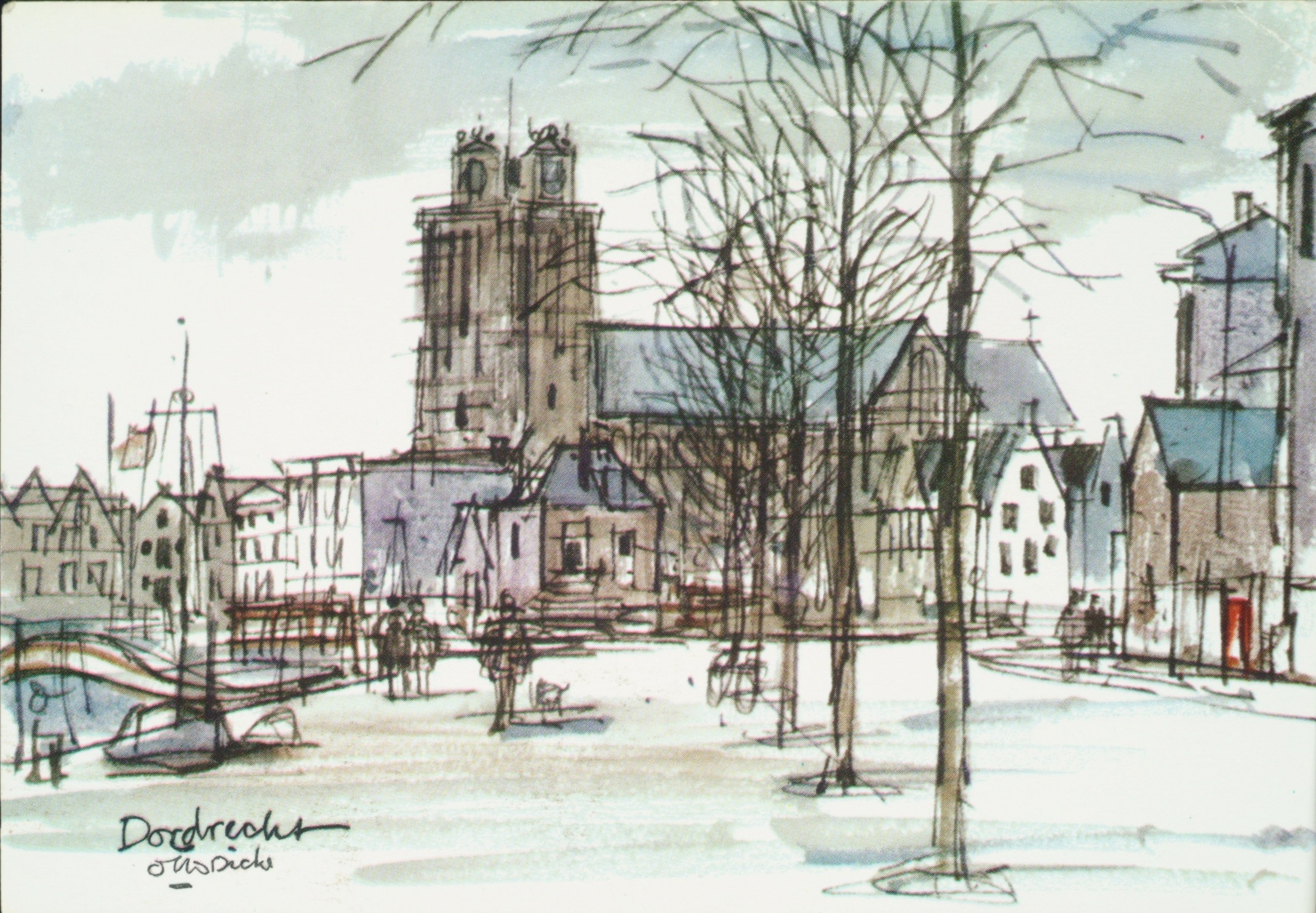 - ansichtkaarten / prentbriefkaarten havens kerken tekeningen