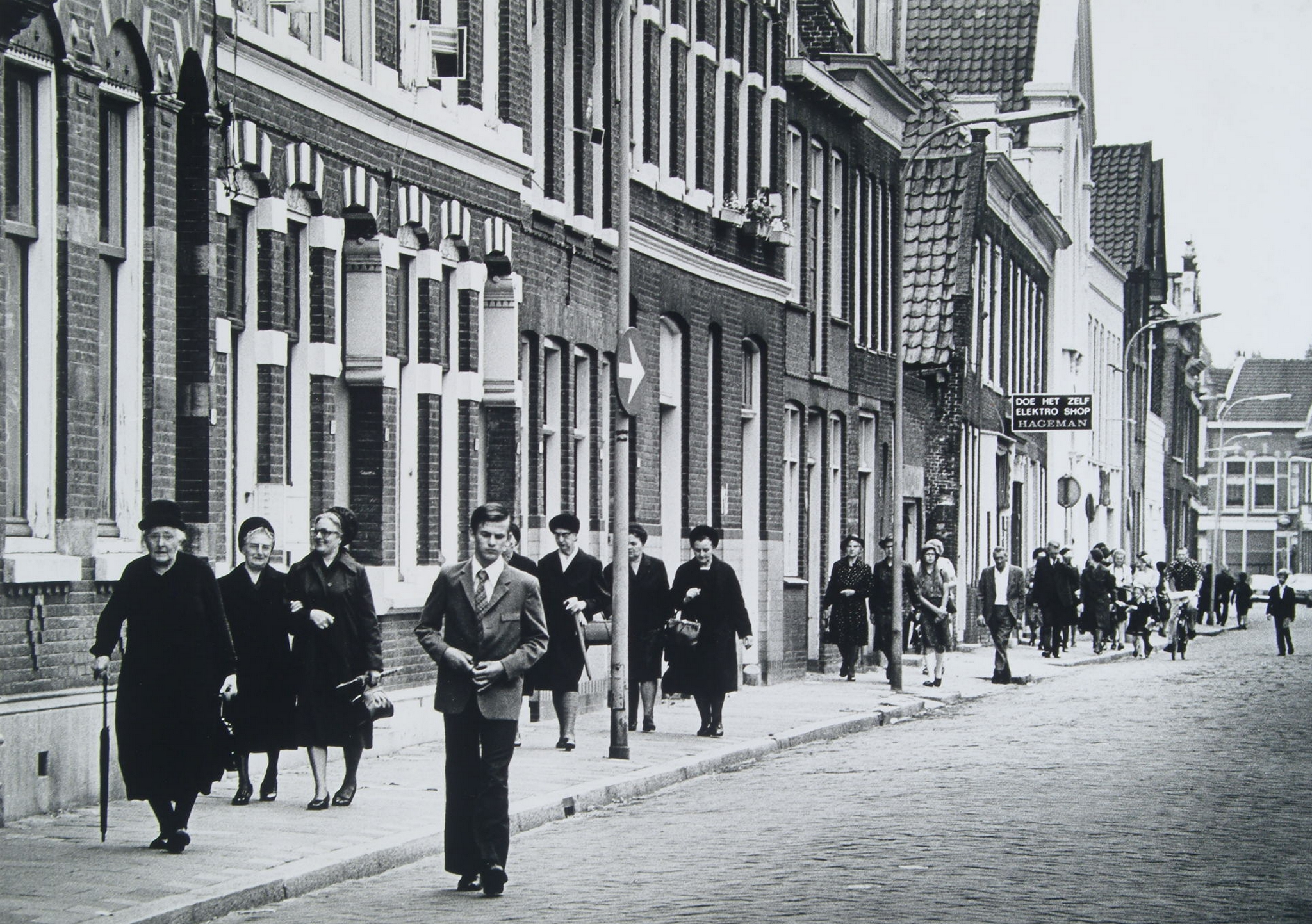 - Kerkgangers van N.H. vereniging Calvijn verlaten hun kerkgebouw aan het Kromhout.
