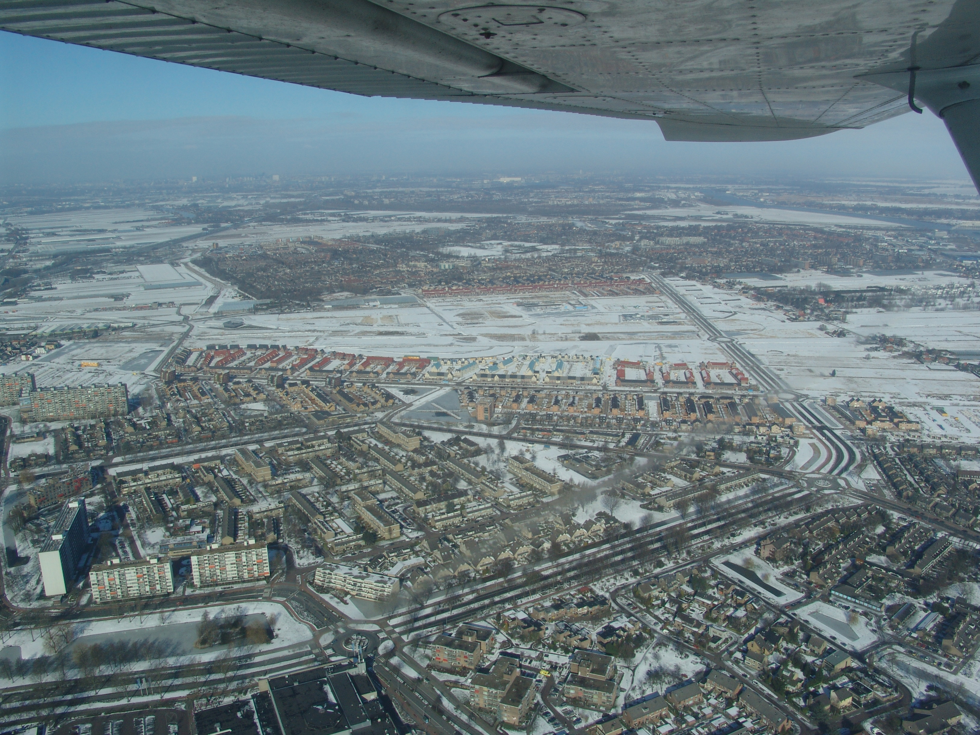 - Luchtfoto Zwijndrecht en Hendrik-Ido-Ambacht )boven). Linksonder Swanendrift, overgaand in de Laan van Walburg en vervolgens in de Laan van Welhorst.