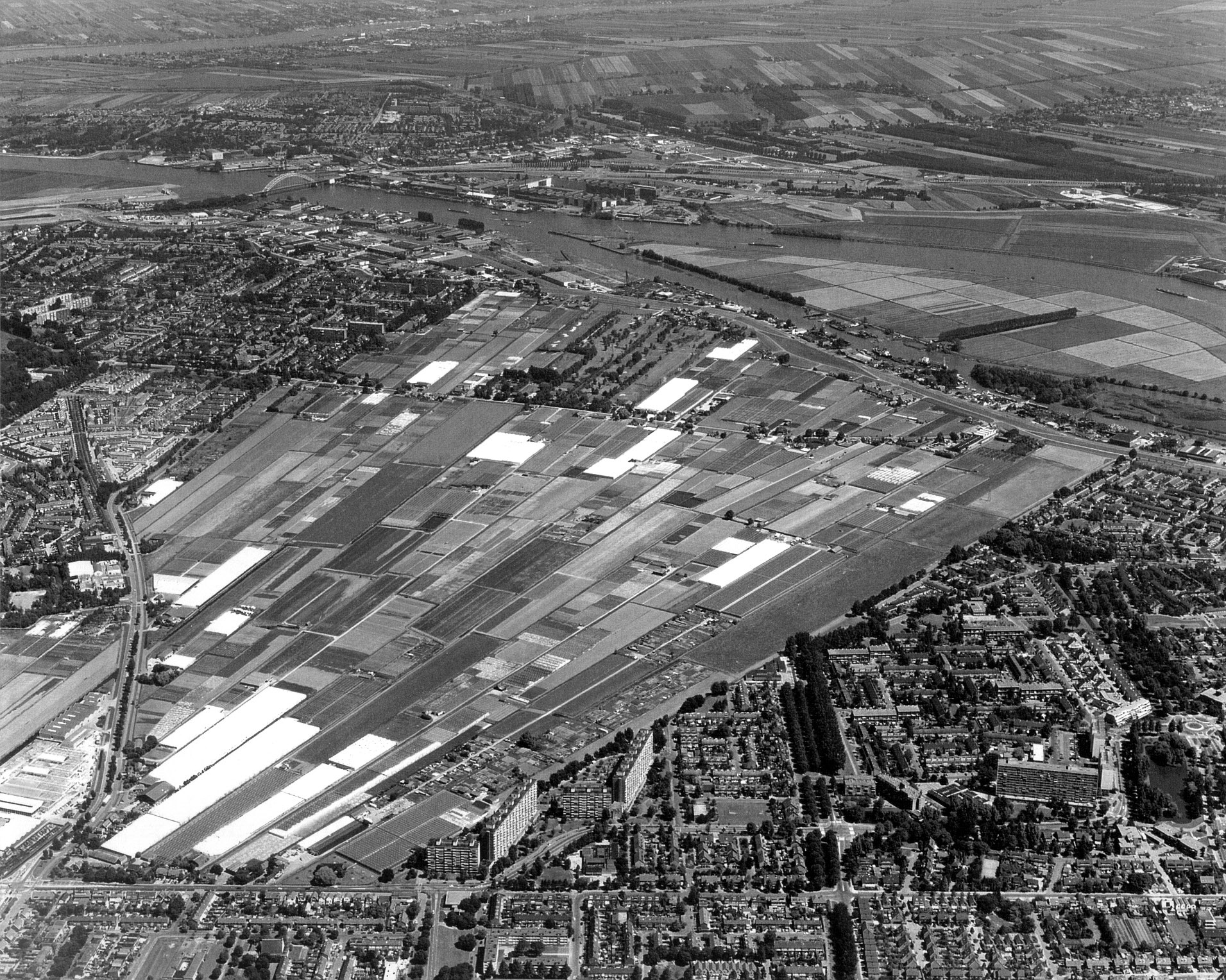 - Luchtfoto van Hendrik-Ido-Ambacht, Zwijndrecht (rechtsonder) en Alblasserdam (boven). Links de Krommeweg. Rechts midden de Sophiapolder.