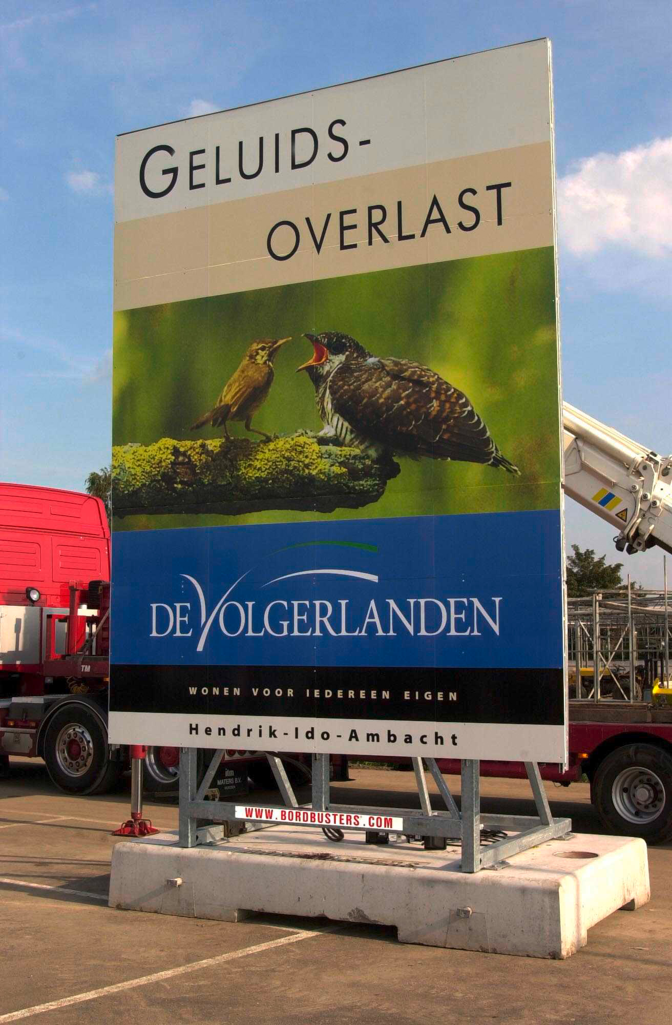 Reclamebord voor de Volgerlanden gereed voor plaatsing .