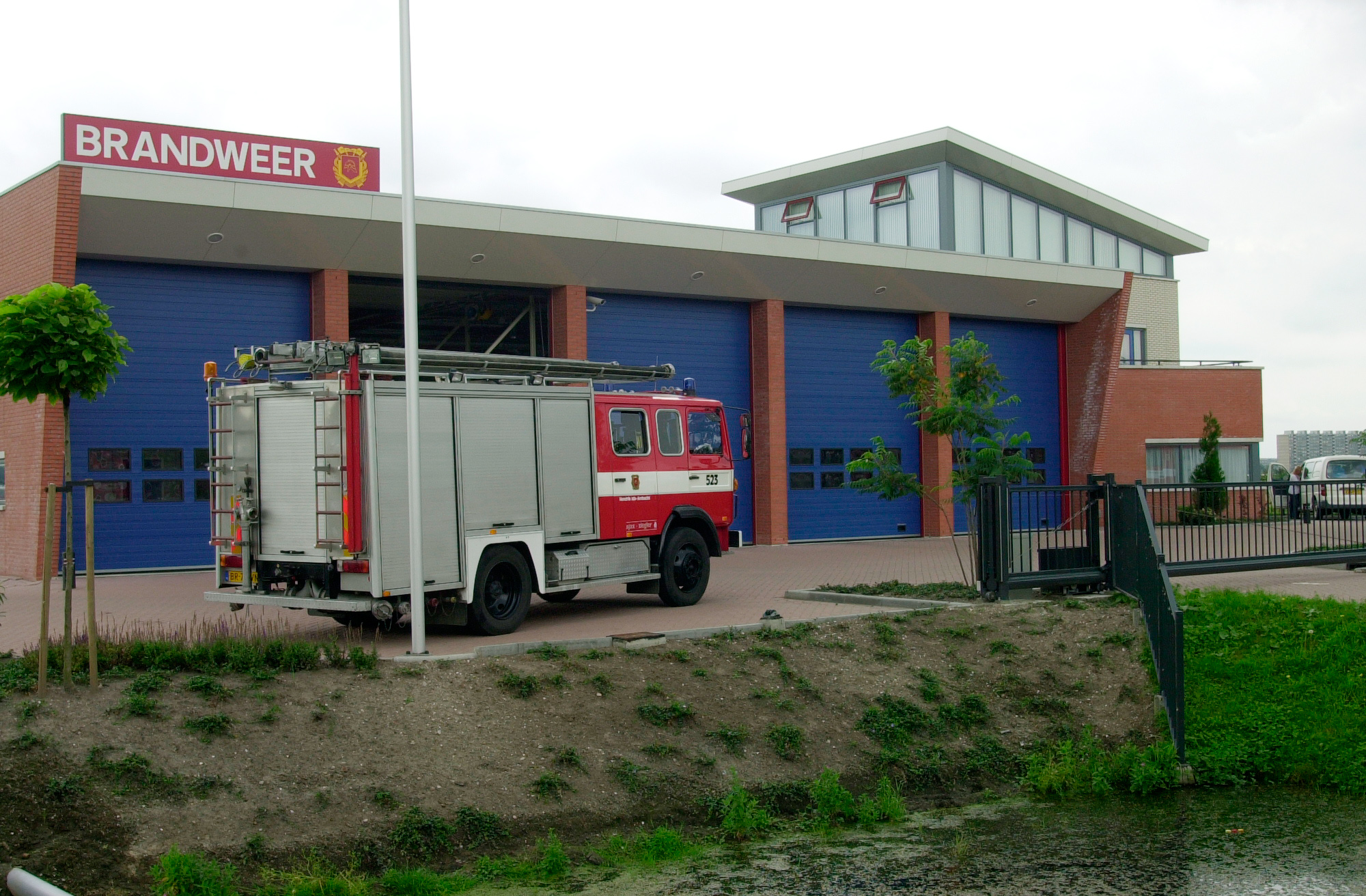 Brandweerkazerne aan de zijde van de Krommeweg in Hendrik-Ido-Ambacht.