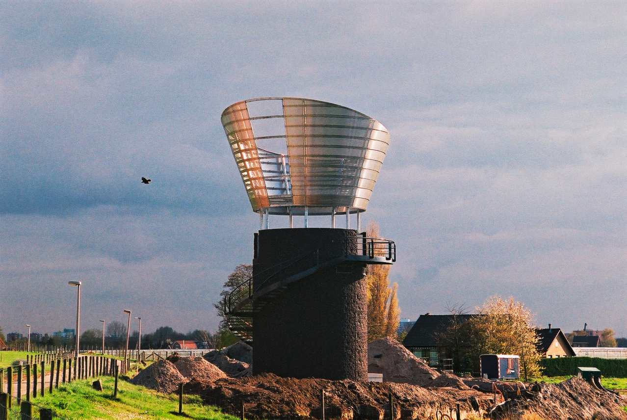 Op de mantel zijn neonletters op een eigenzinnige manier aangebracht wat de nieuwsgierigheid van de voorbijganger moet aanwakkeren te gaan onderzoeken wat daar eigenlijk te lezen staat. Het kunstwerk heet "Lichtgedicht". Het staat aan de Veersedijk/Onderdijkse Rijweg 352, Hendrik-Ido-Ambacht. https://goo.gl/maps/U9VpP3itfveRS5t16