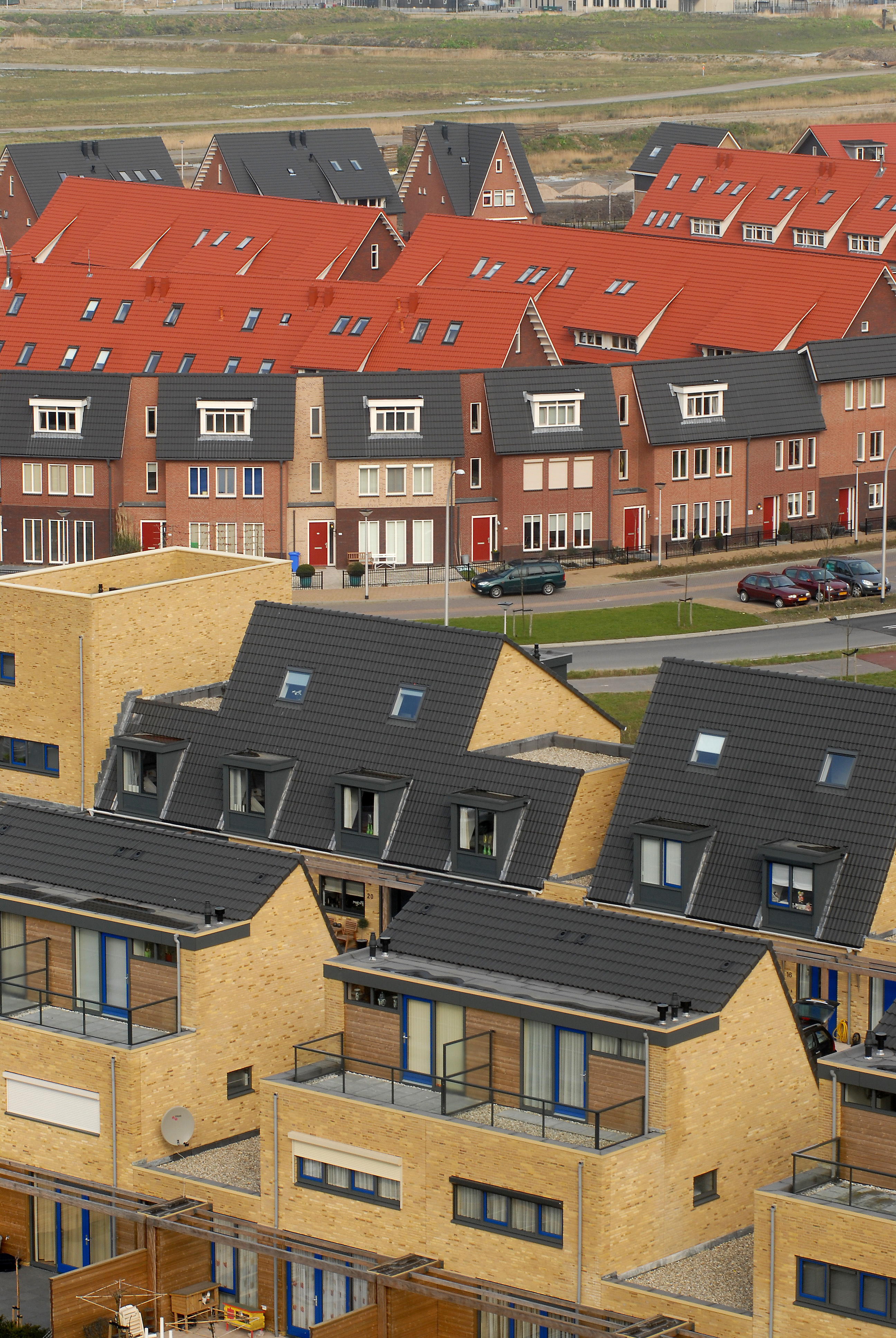 Op de voorgrond huizen aan Struisgras in Hendrik-Ido-Ambacht. Daarachter huizen aan de Bolster.