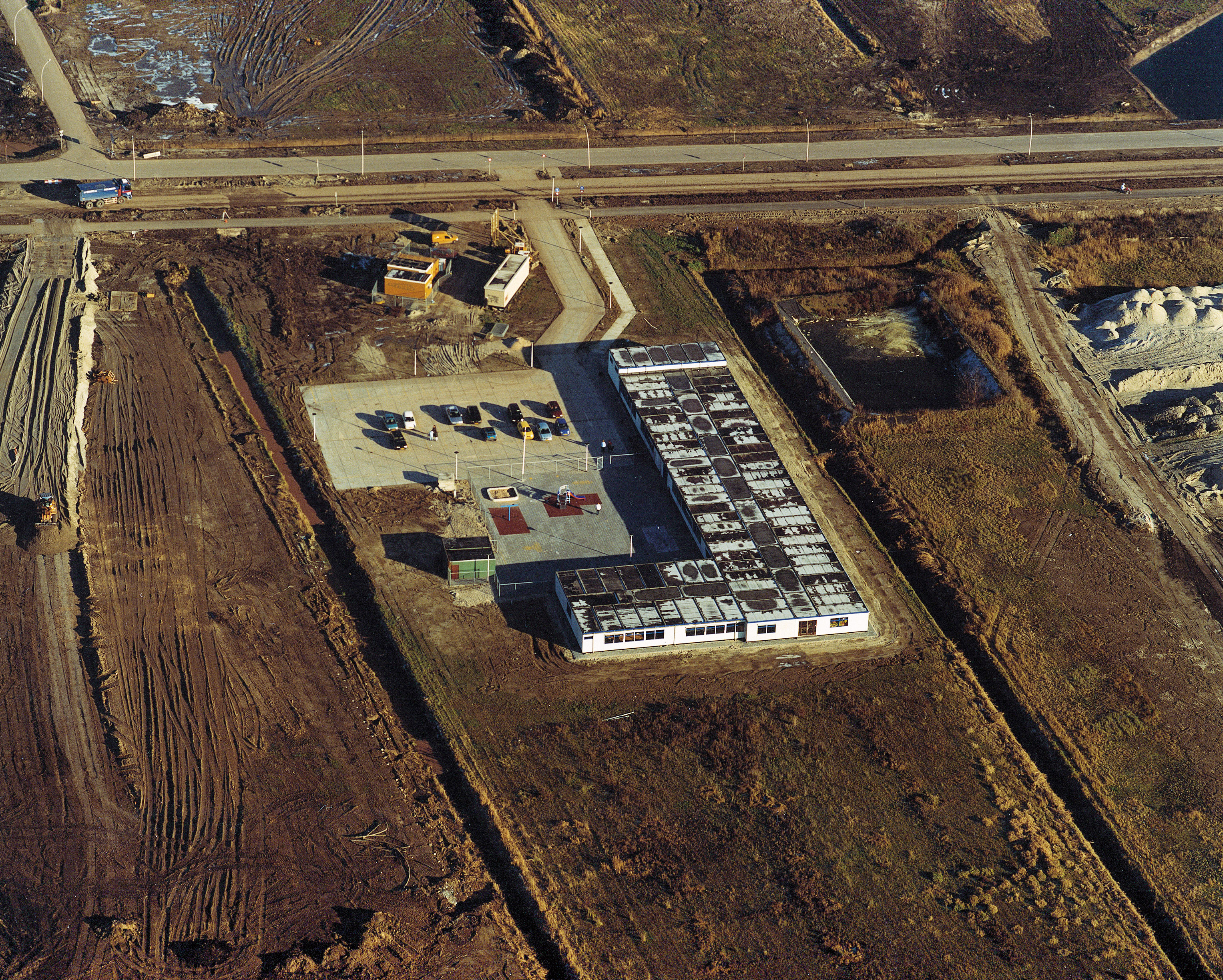 - Luchtfoto van Hendrik-Ido-Ambacht met de noodscholen aan de Laan van Welhorst.