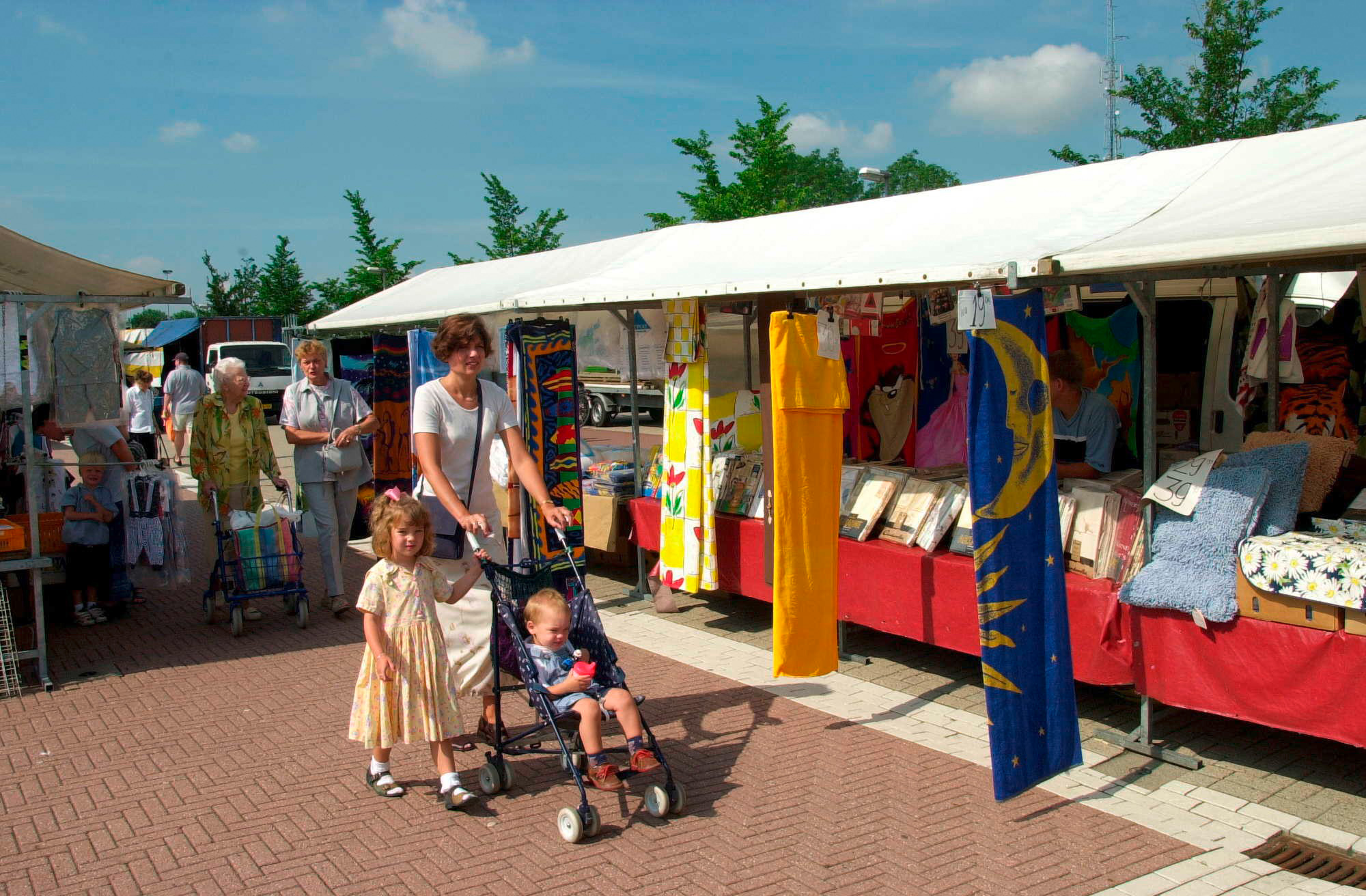 - Marktkramen op het parkeerterrein van de Ridderhal aan de Hoge Kade in Hendrik-Ido-Ambacht.