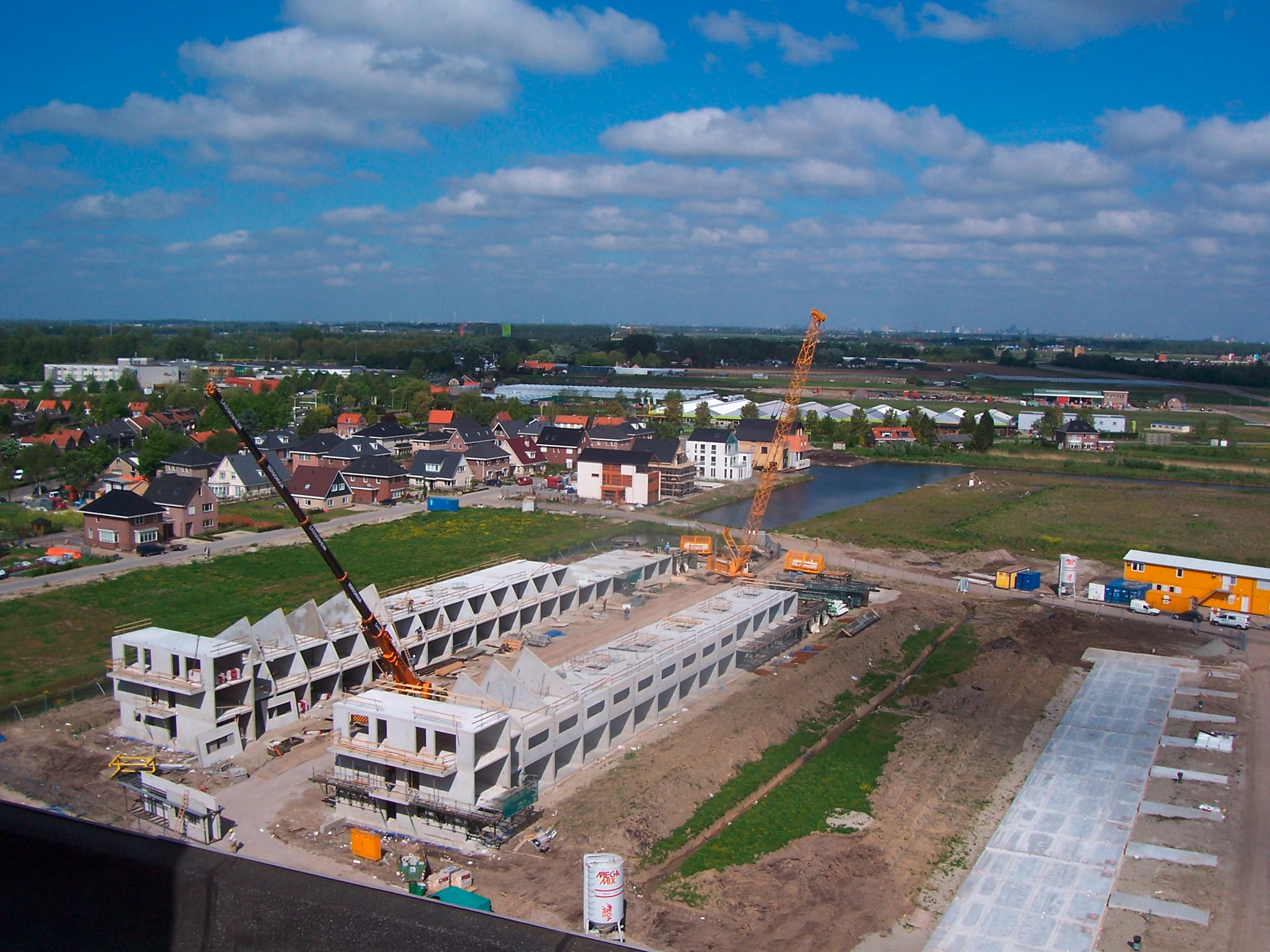 Bouw van huizen aan de Windhorst in Hendrik-Ido-Ambacht. Links de Zwanebloem.