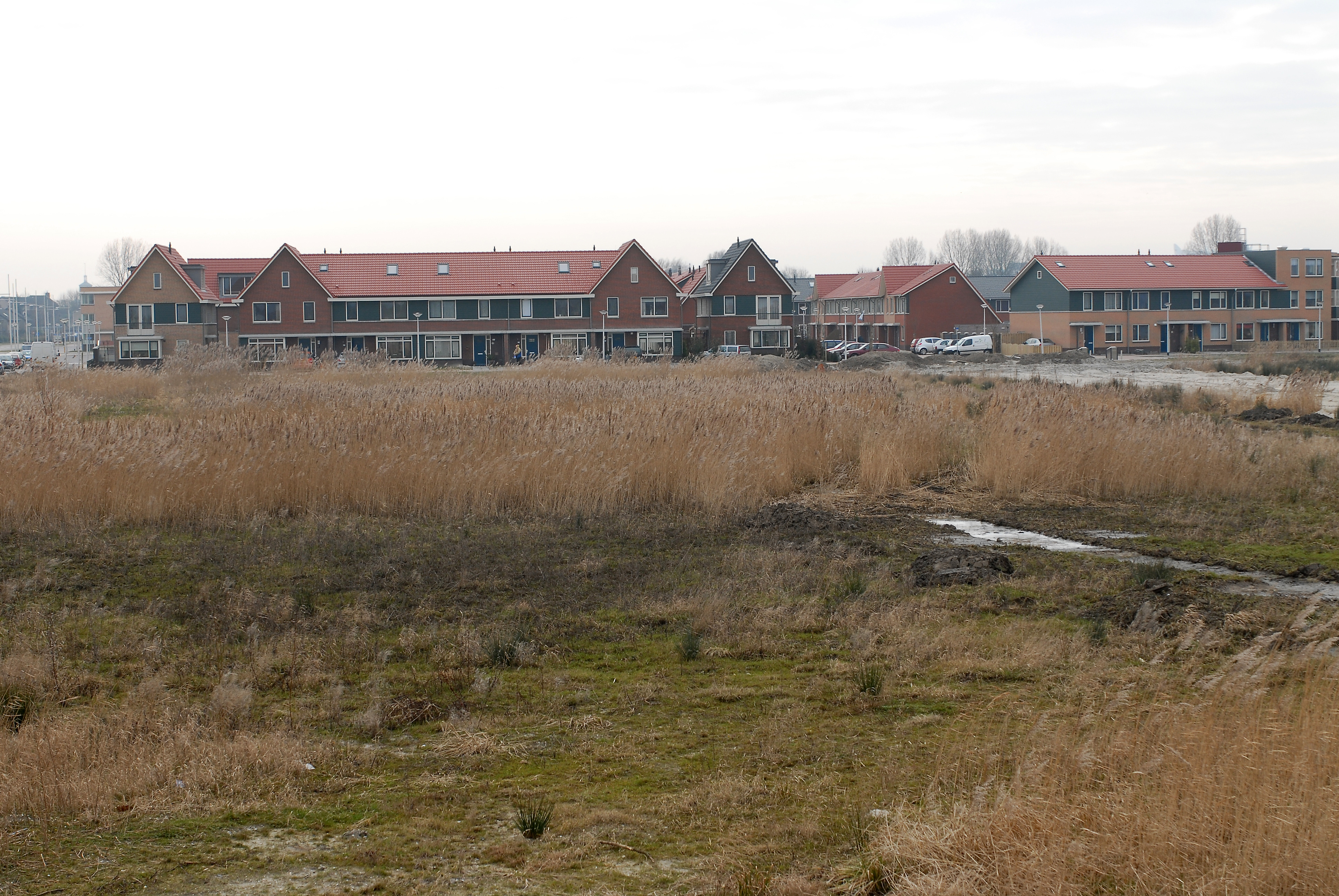 Zicht op het Hooftlaantje HIA vanaf een tegenover liggend bouwkavel aan de Kwelder, in zuidelijke richting.