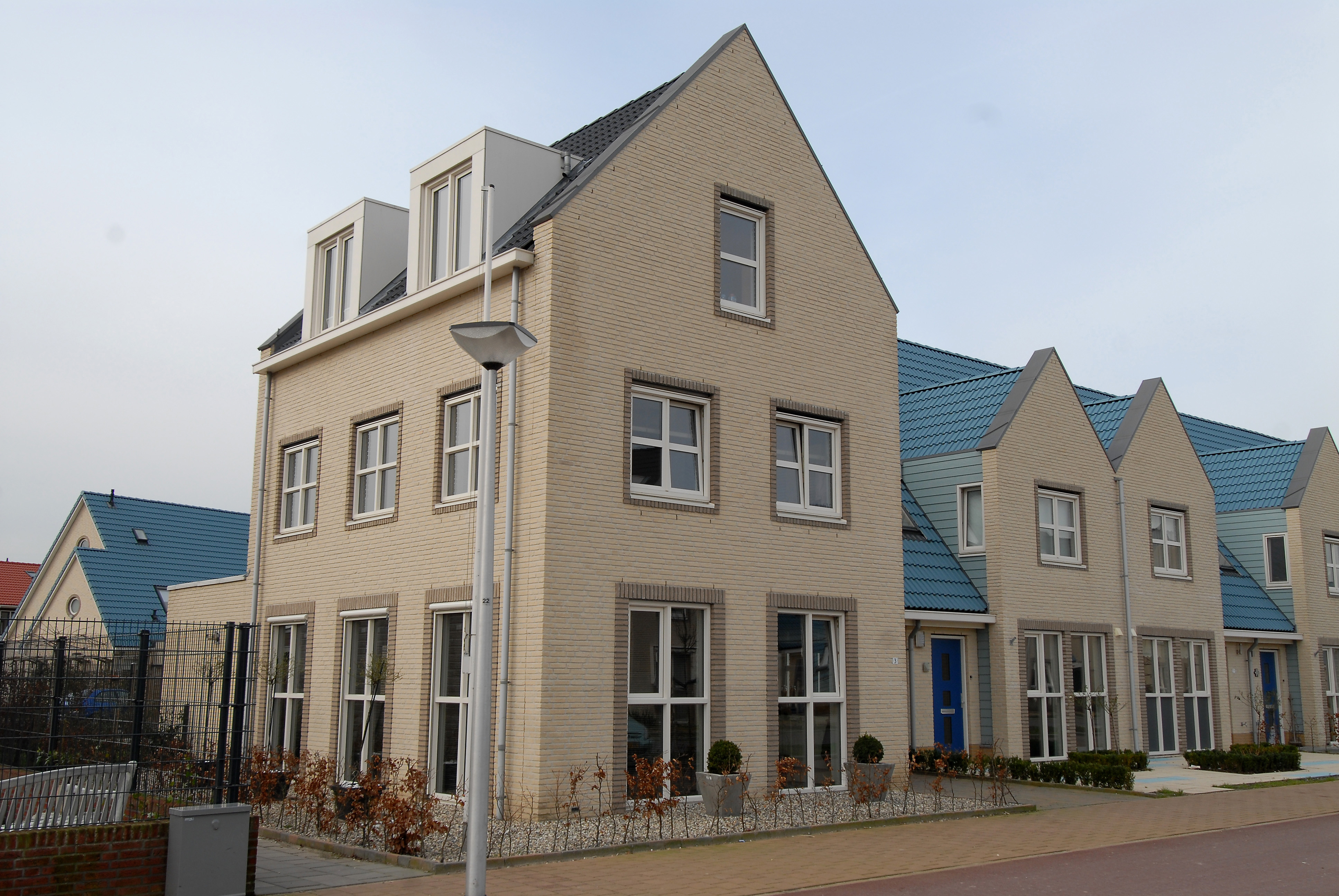 Horst nummer 3 (hoekwoning) met 5-7 rechts ernaast richting Hooftlaantje in H.I.Ambacht.