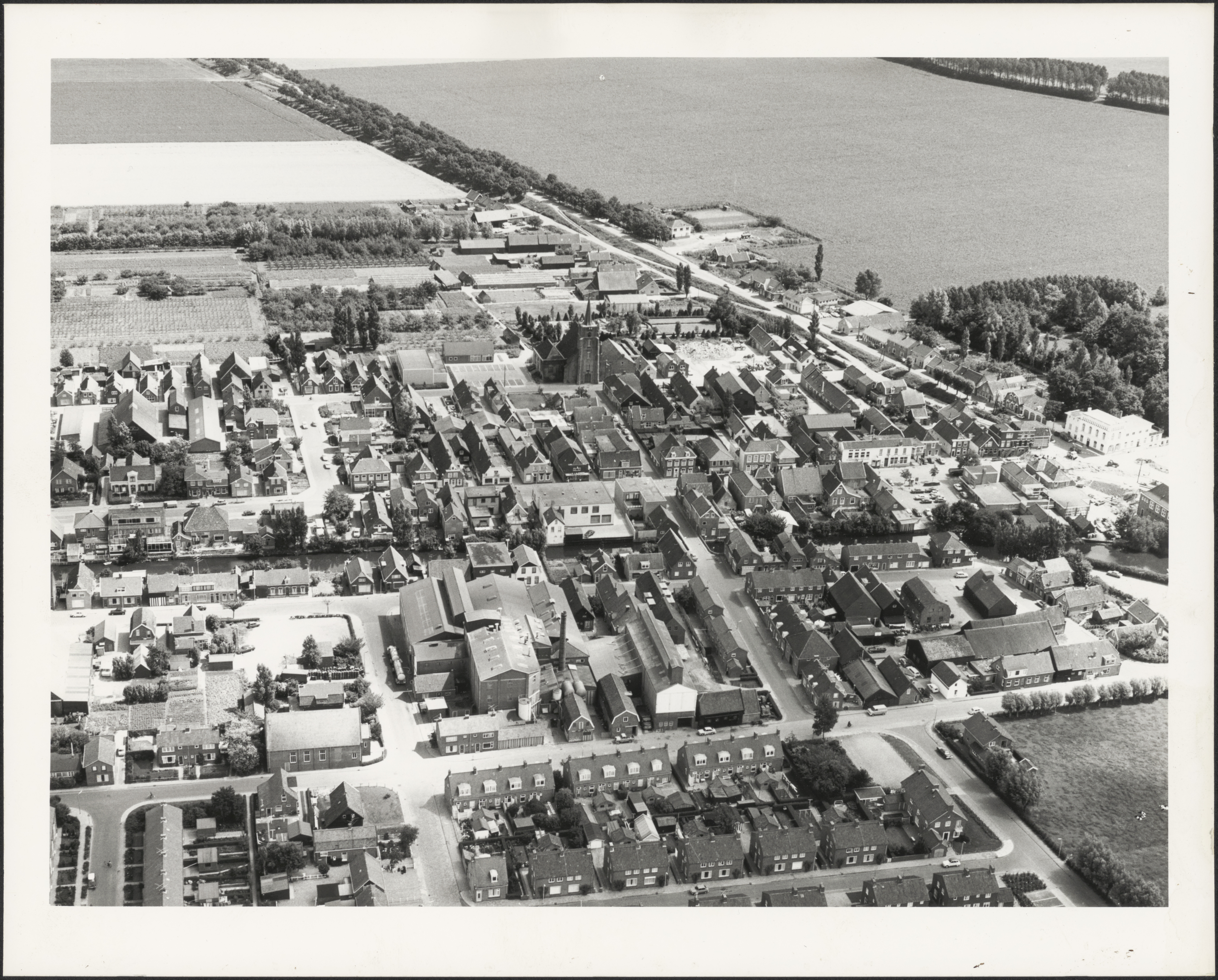 - Luchtfoto van het centrum van Numansdorp, gezien naar het oosten.