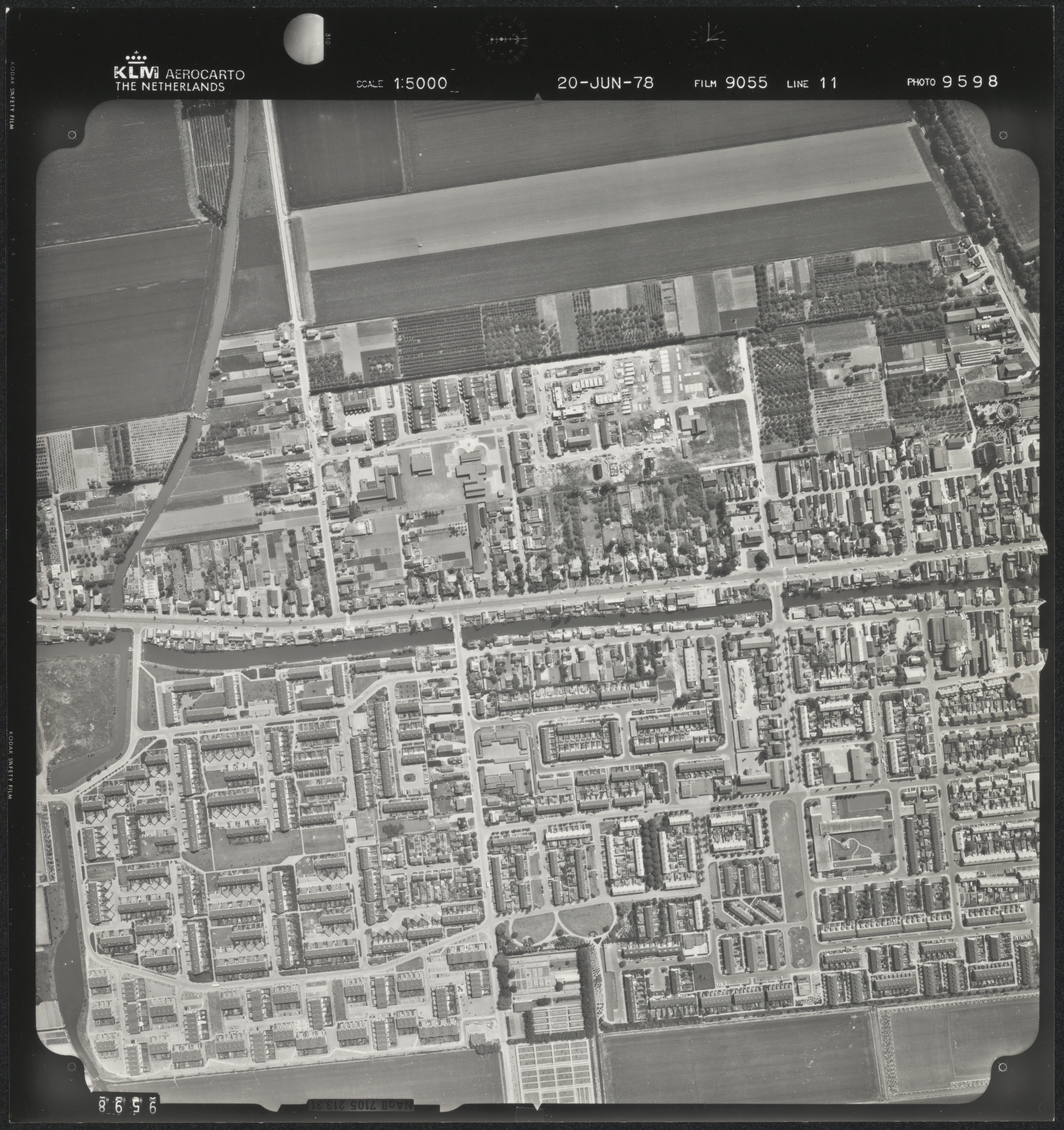 Luchtfoto van Numansdorp, tussen Middelsluis en Numansdorp centrum, van 20 juni 1978.